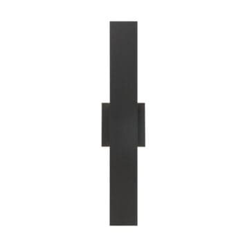 A flat rectangular panel extrudes from a backplate made of the same anodized metal for a seamless, unified look. The flat form, sitting vertically, creates a structural design that perfectly accentuates minimalist spaces.