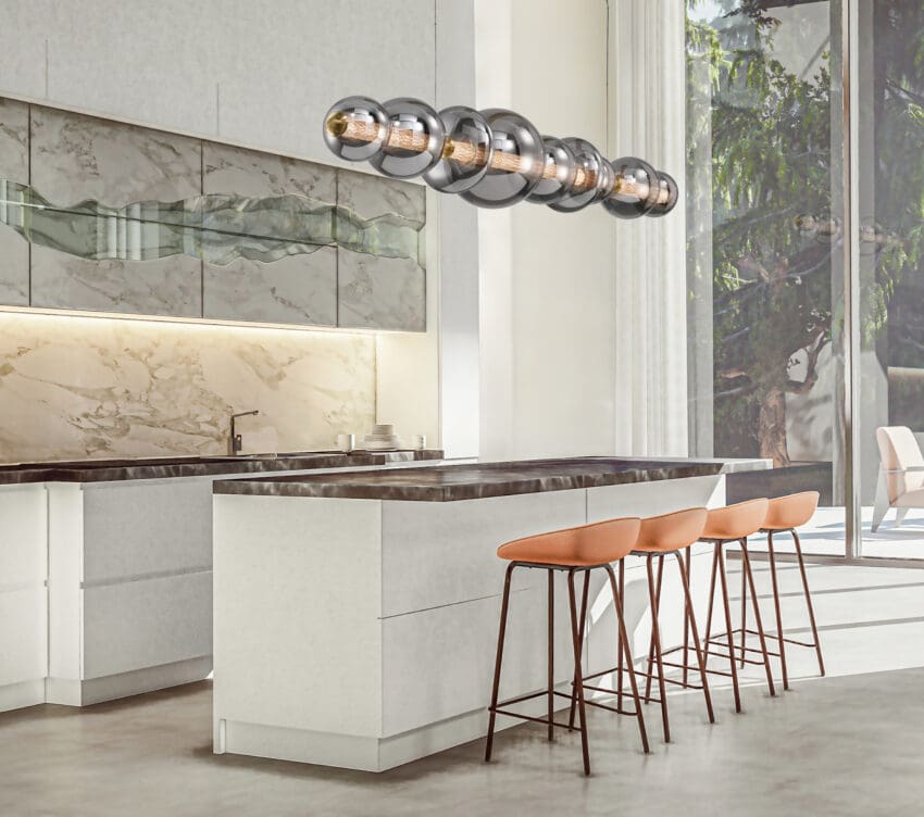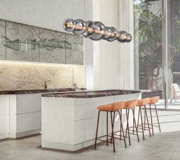 A fascinating globe fixture, Atomo offers a unique and proprietary LED lamping called CRYSTAL PITCH. Faceted crystal gears surround the LED light source to emit spectacular refraction within the crystal glass globe.
