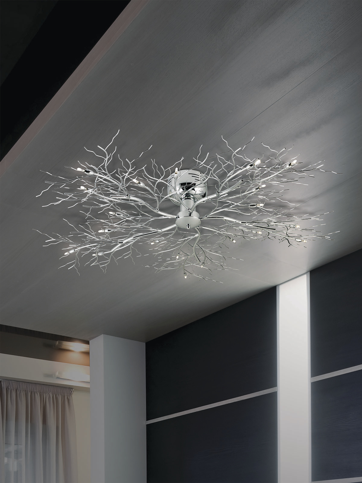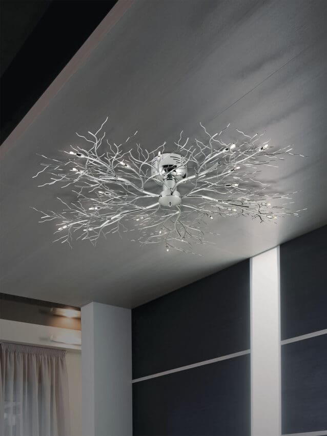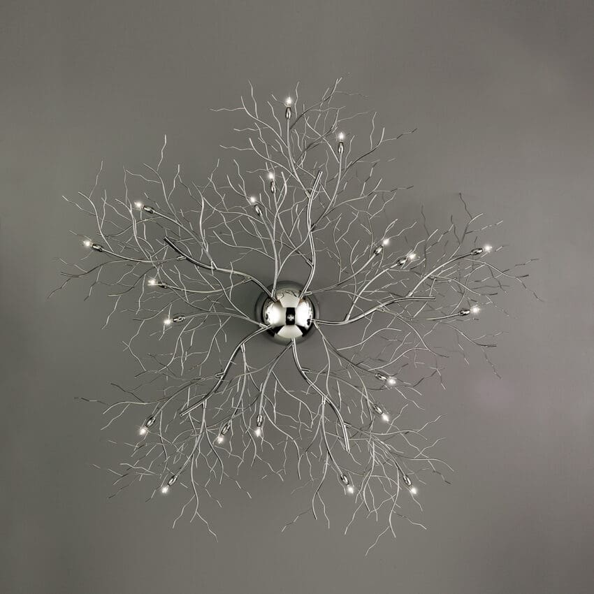 The intricate motley of fine metal work branches out in various directions. Inspired by nature, the chrome finish elevates this design to fit in numerous settings.