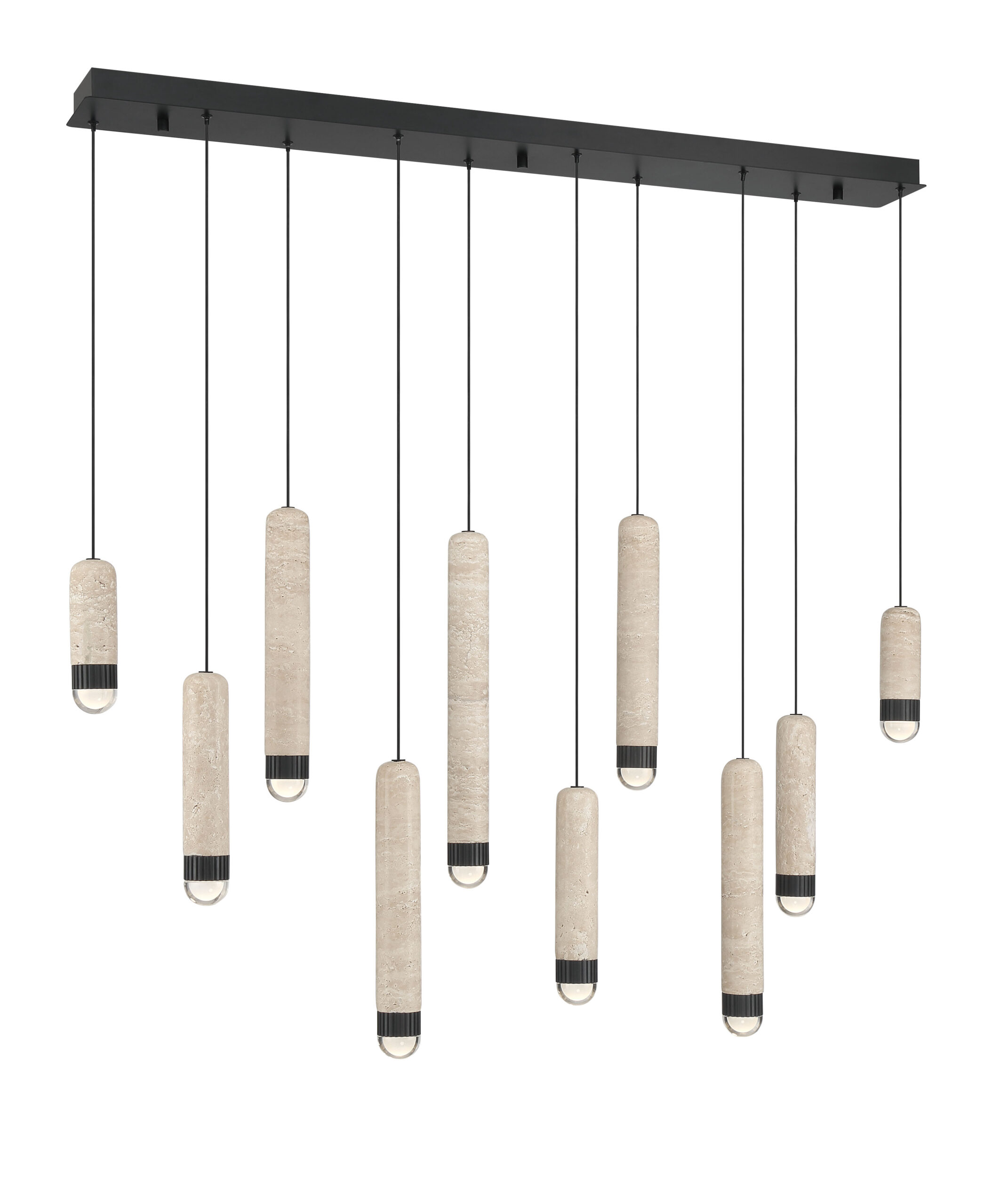 Cambre, Chandelier , 10-Light, 50", Matte Black, Travertine