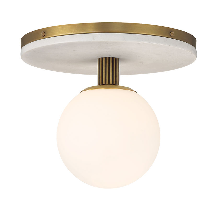 Carnagie, Flush Mount, 8", Antique Brass, Opal Etched Glass