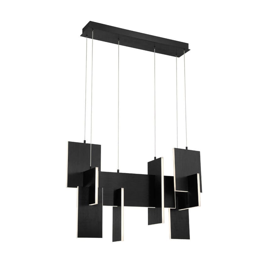 Slim, edge-lit LED panels are creatively positioned to intersect in a dynamic, whimsically modern design. A continuous run of LED lights delivers seamless, multi-directional lighting. The interlocking aluminum panels are laser cut for added precision and anodized to create a durable, corrosion-resistant finish thatβs available in either gold or black.