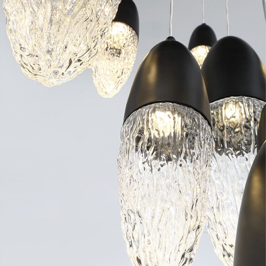 Drawing inspiration, straight from nature, the Écrou collection showcases large hand blown glass shades reminiscent of large acorns. The clear glass highlights a detailed wood grain texture that is combined with your choice of matte black, matte gold, or a mix of both finishes for a stately, stylized piece. For further illumination options, this collection uses compatible LED lamping