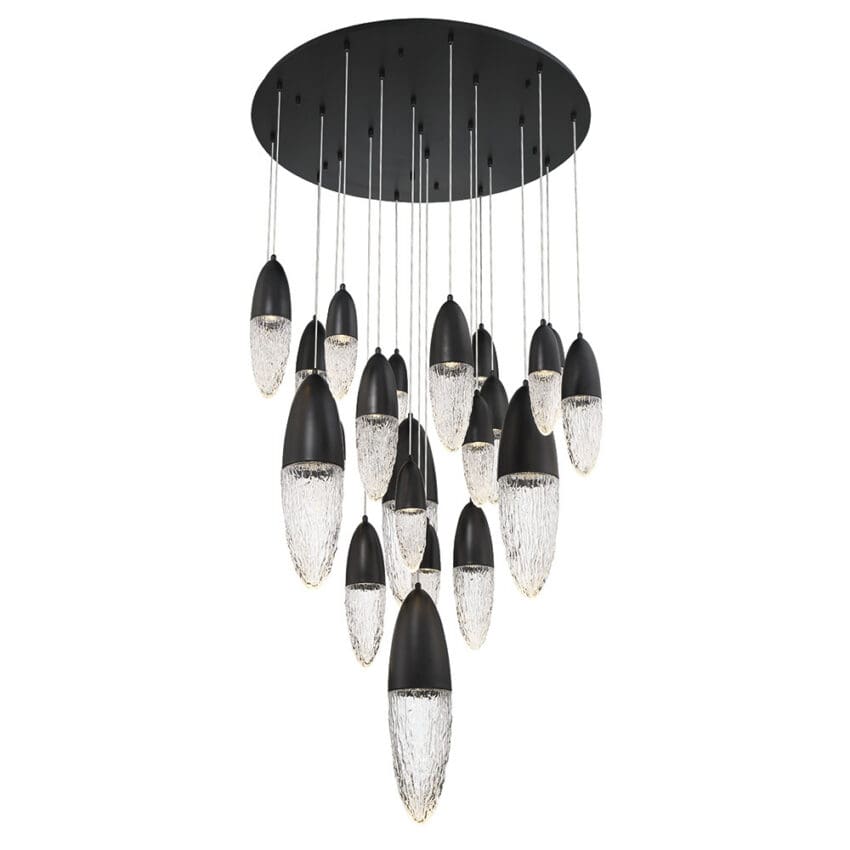 Ecrou, Chandelier, 22-Light, 40", Matte Black, Clear Glass