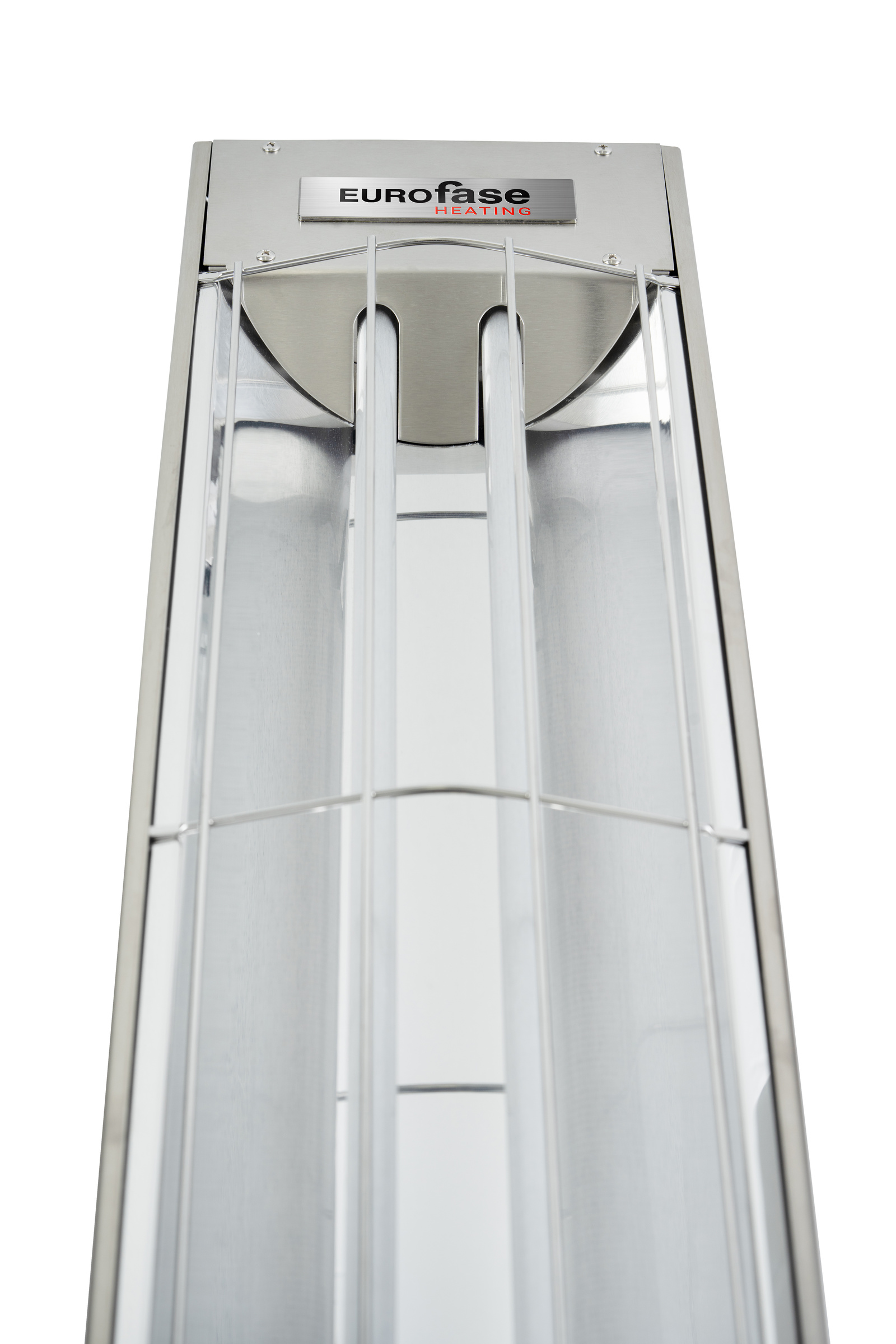 The EF50 is a 39-inch 5000 watt electric heater featuring dual quartz elements, designed to deliver efficient, even heat across an area of approximately 9 feet by 10 feet (90 sq.ft.). Ideal for spacious patios, commercial outdoor areas, and large gathering spots, it provides exceptional comfort and warmth.