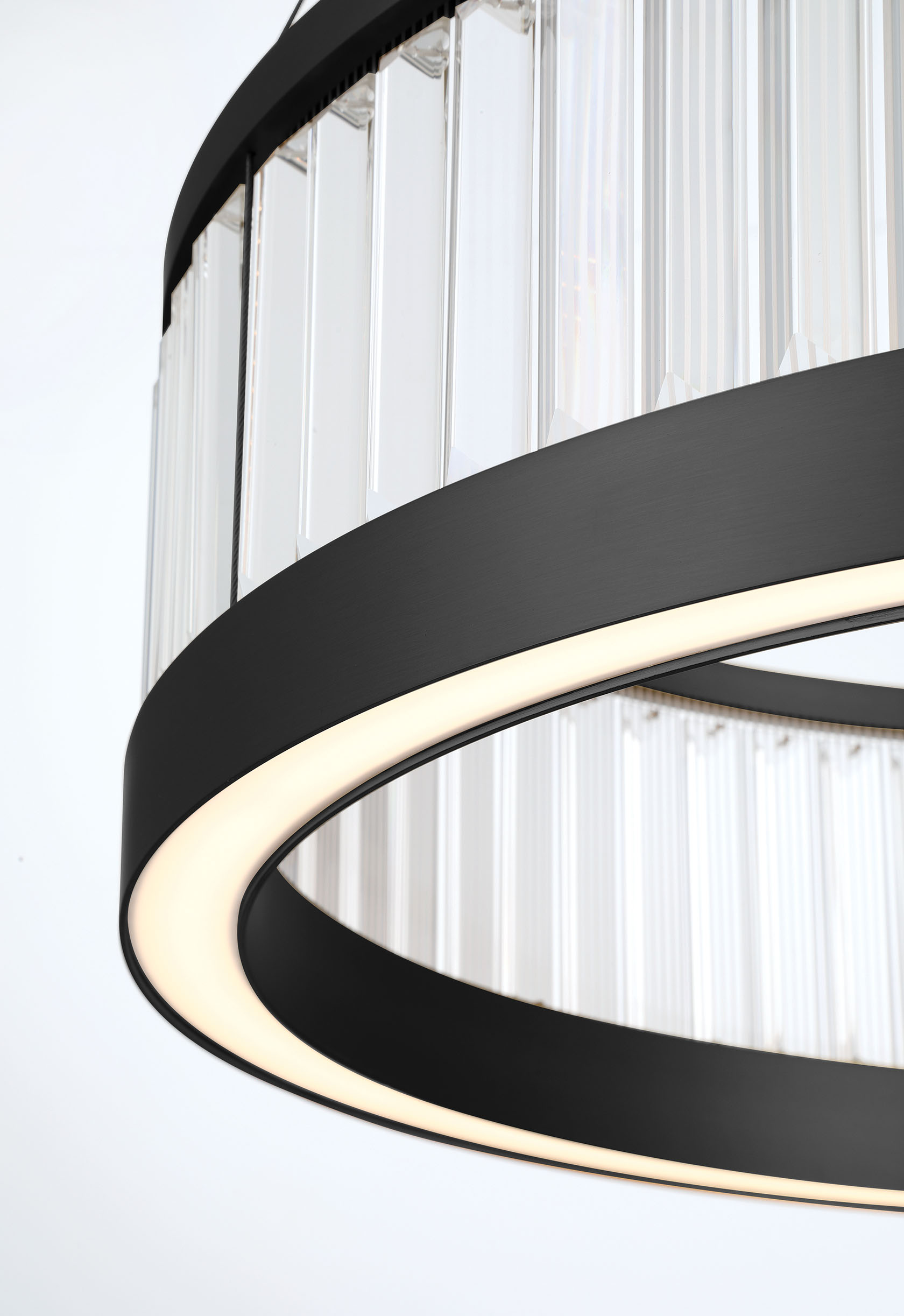 Precision becomes poetry through a series of stepped aluminum rings wrapped in hand-placed crystal. As you move through the space, light shifts and sparkles in quiet motion, revealing new facets from every angle. A concealed internal glow animates the crystal from within, while layered diffusion beneath each tier introduces soft ambient balance. Empra brings depth, movement, and unmistakable presence to the room.