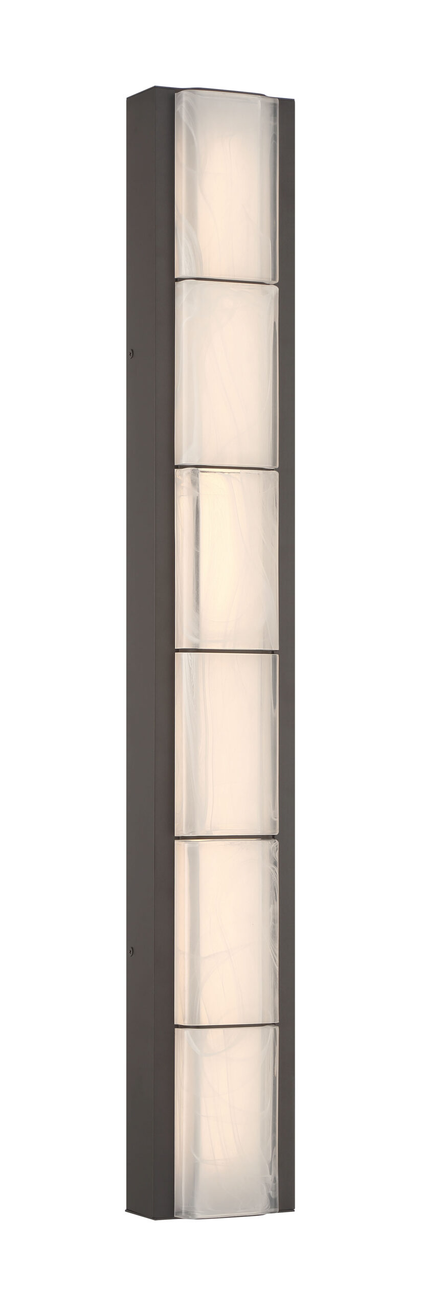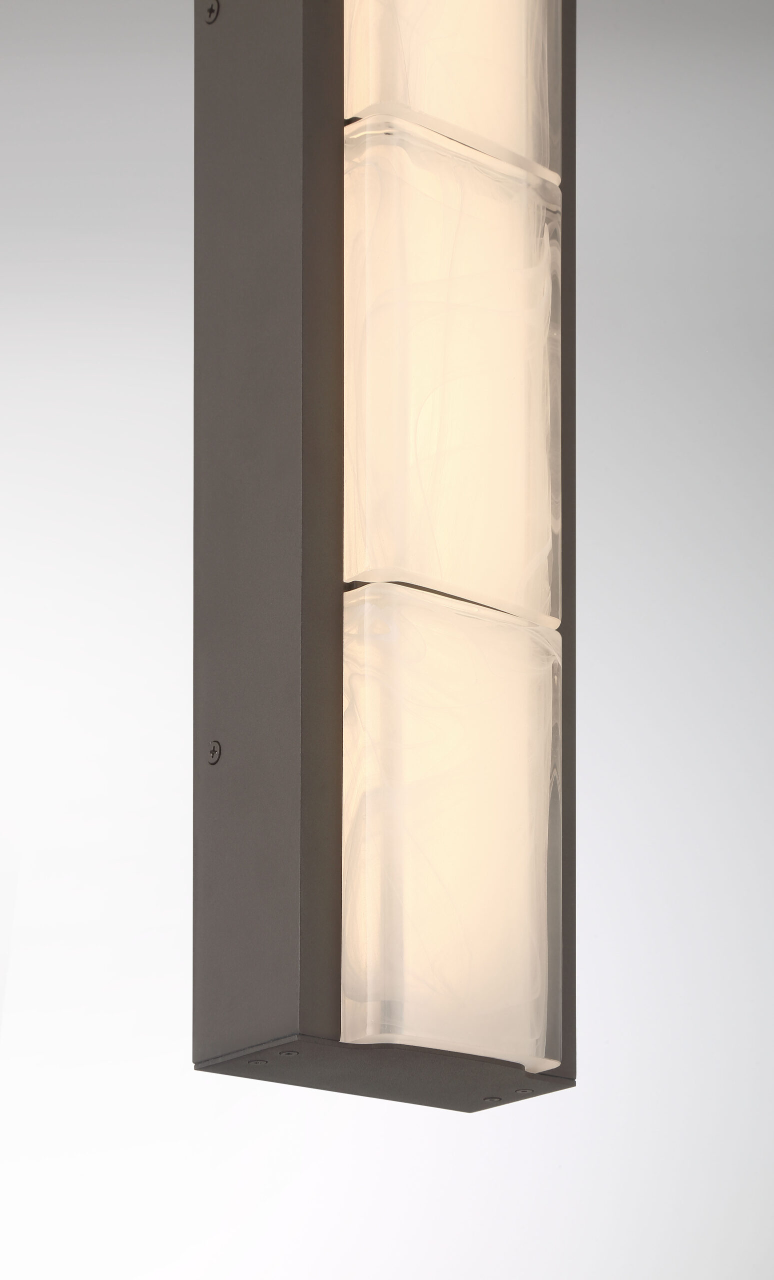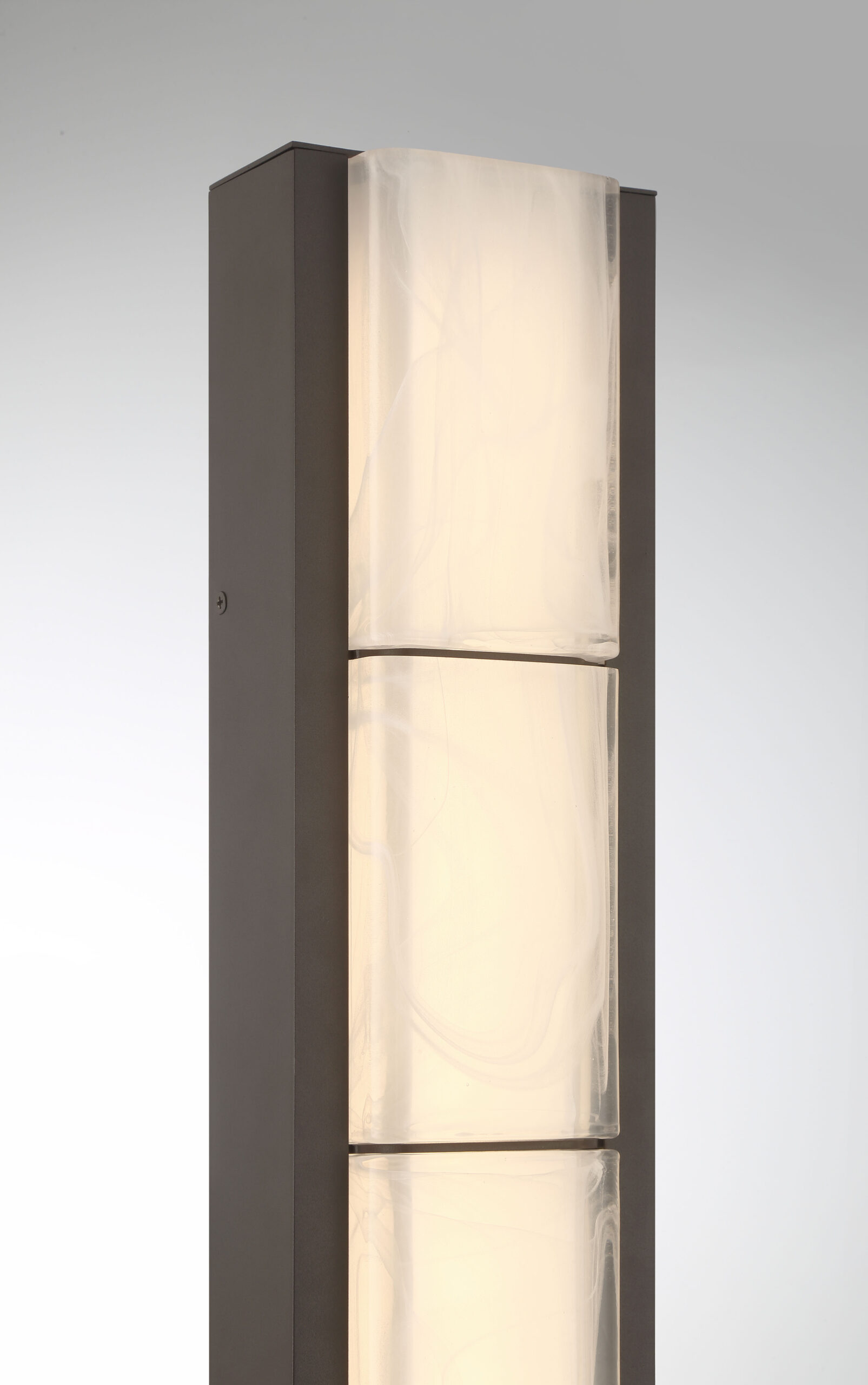 Stacked strié glass diffuses light into a soft, marbled glow that feels calm and architectural after dark. Subtle streaking within the glass introduces natural texture, while the composed vertical form brings tailored structure to exterior environments. Gibraltar feels grounded and enduring, offering a refined balance of material depth and illumination.