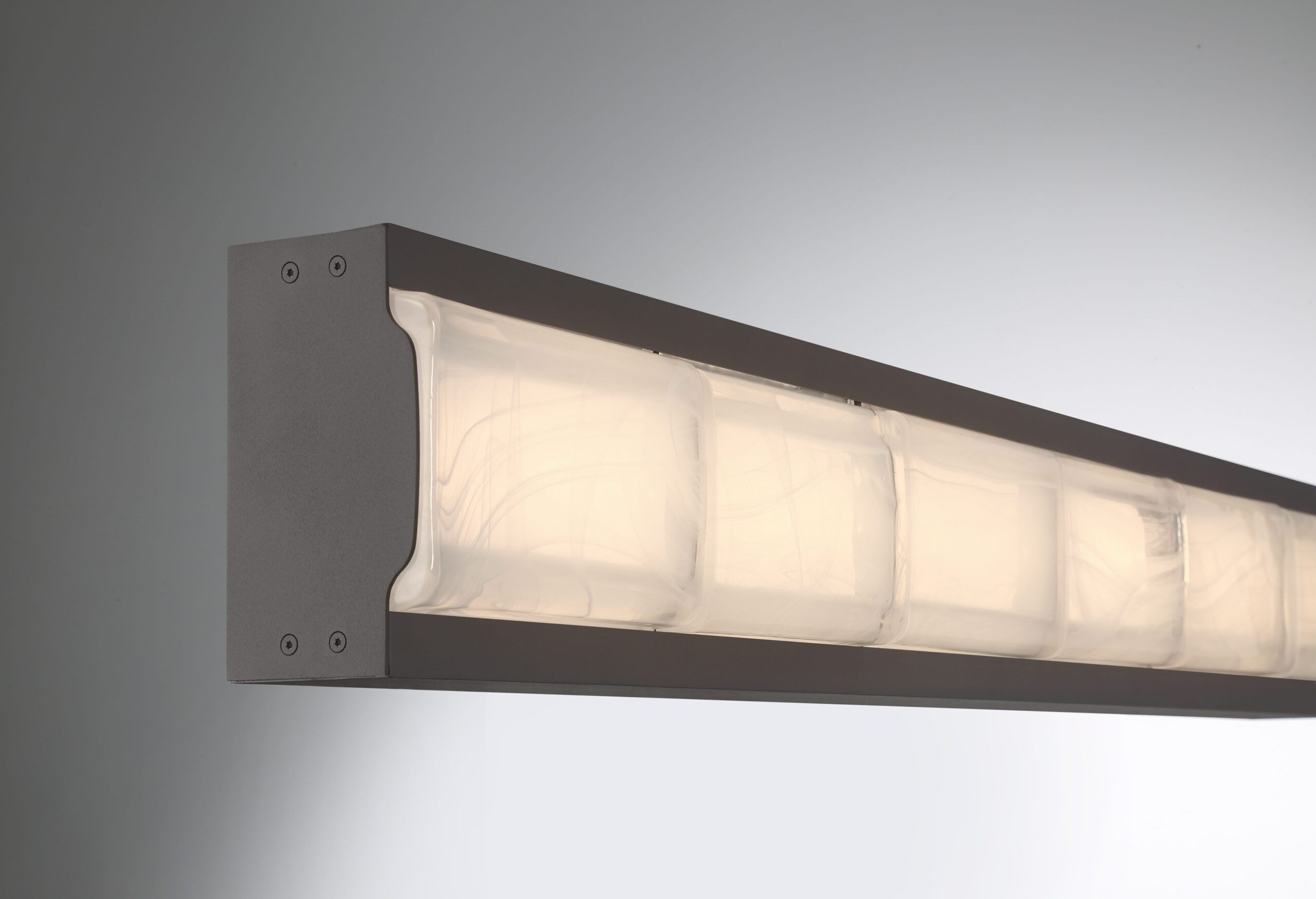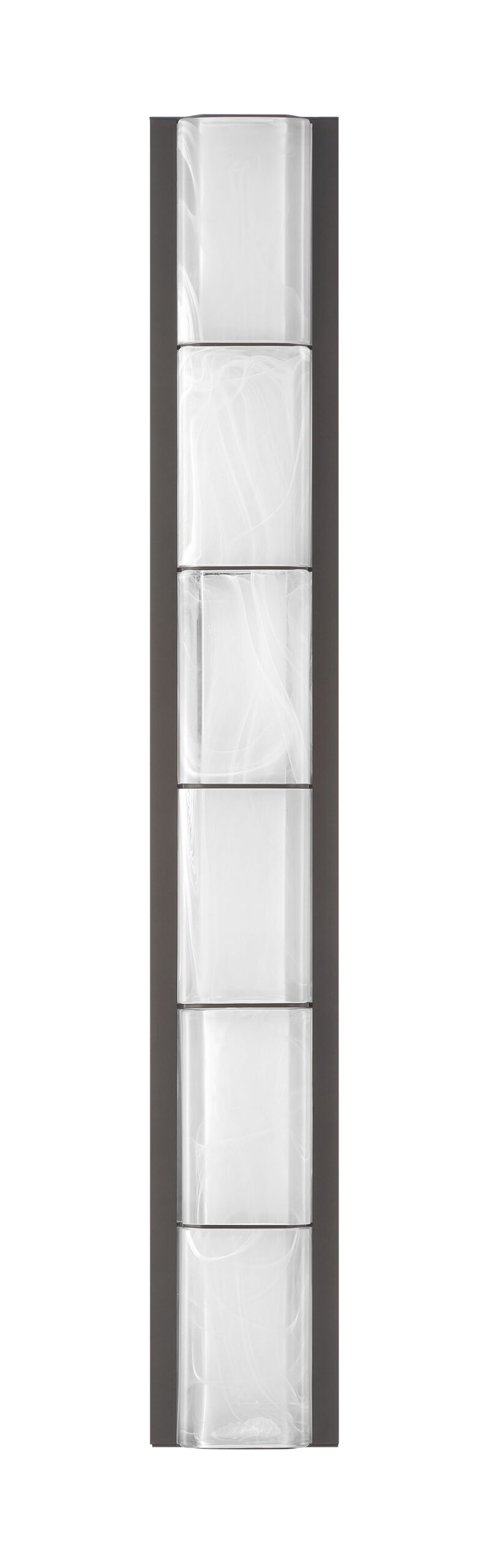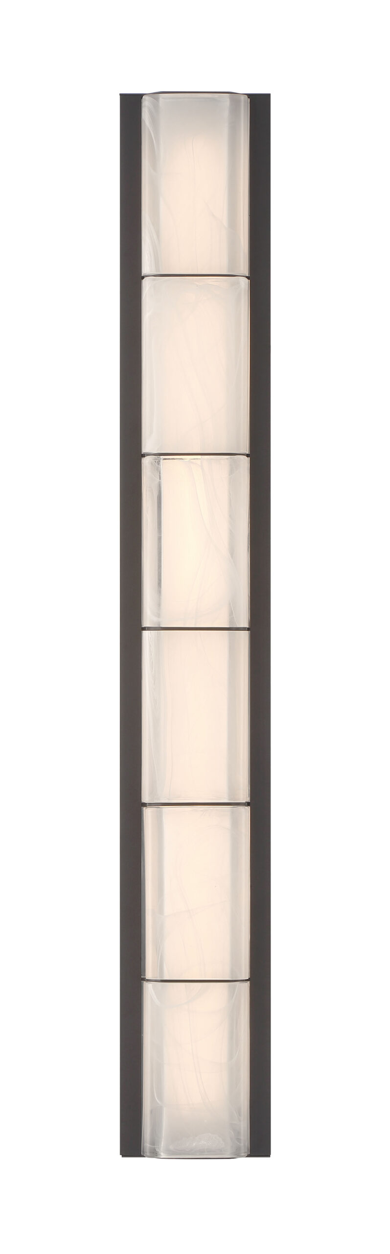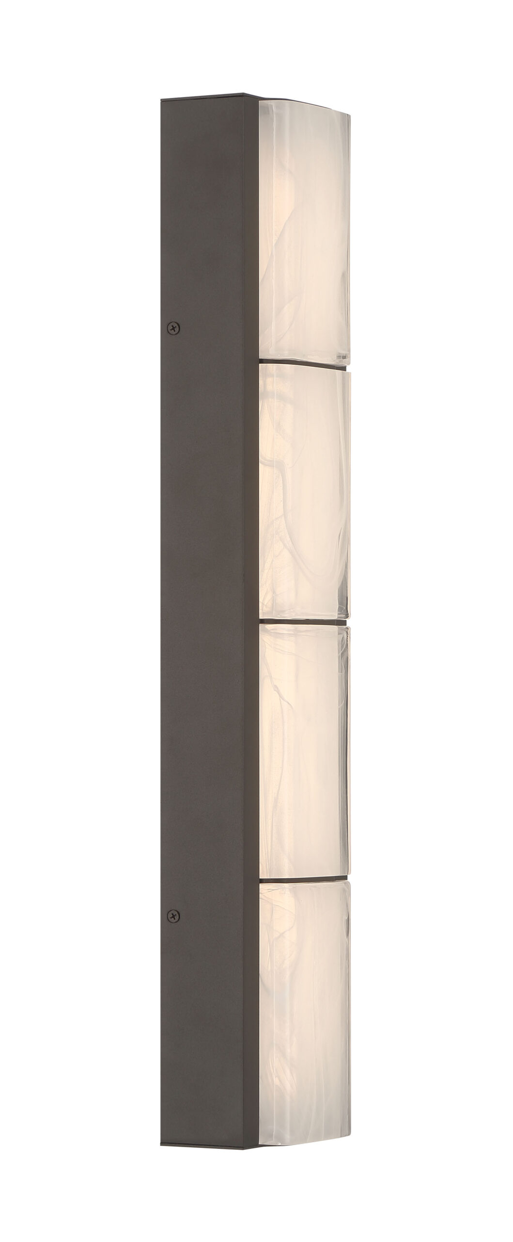 Stacked strié glass diffuses light into a soft, marbled glow that feels calm and architectural after dark. Subtle streaking within the glass introduces natural texture, while the composed vertical form brings tailored structure to exterior environments. Gibraltar feels grounded and enduring, offering a refined balance of material depth and illumination.
