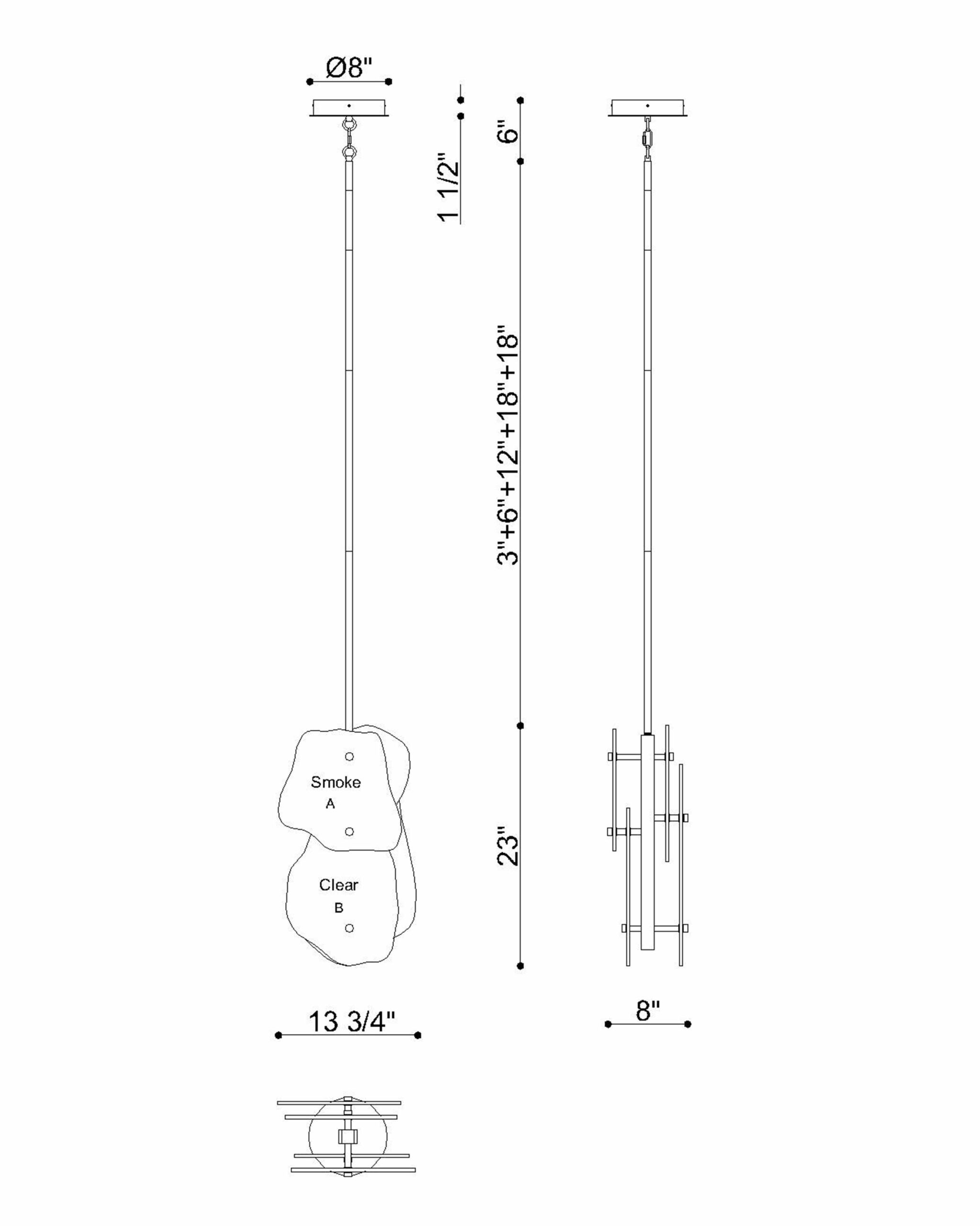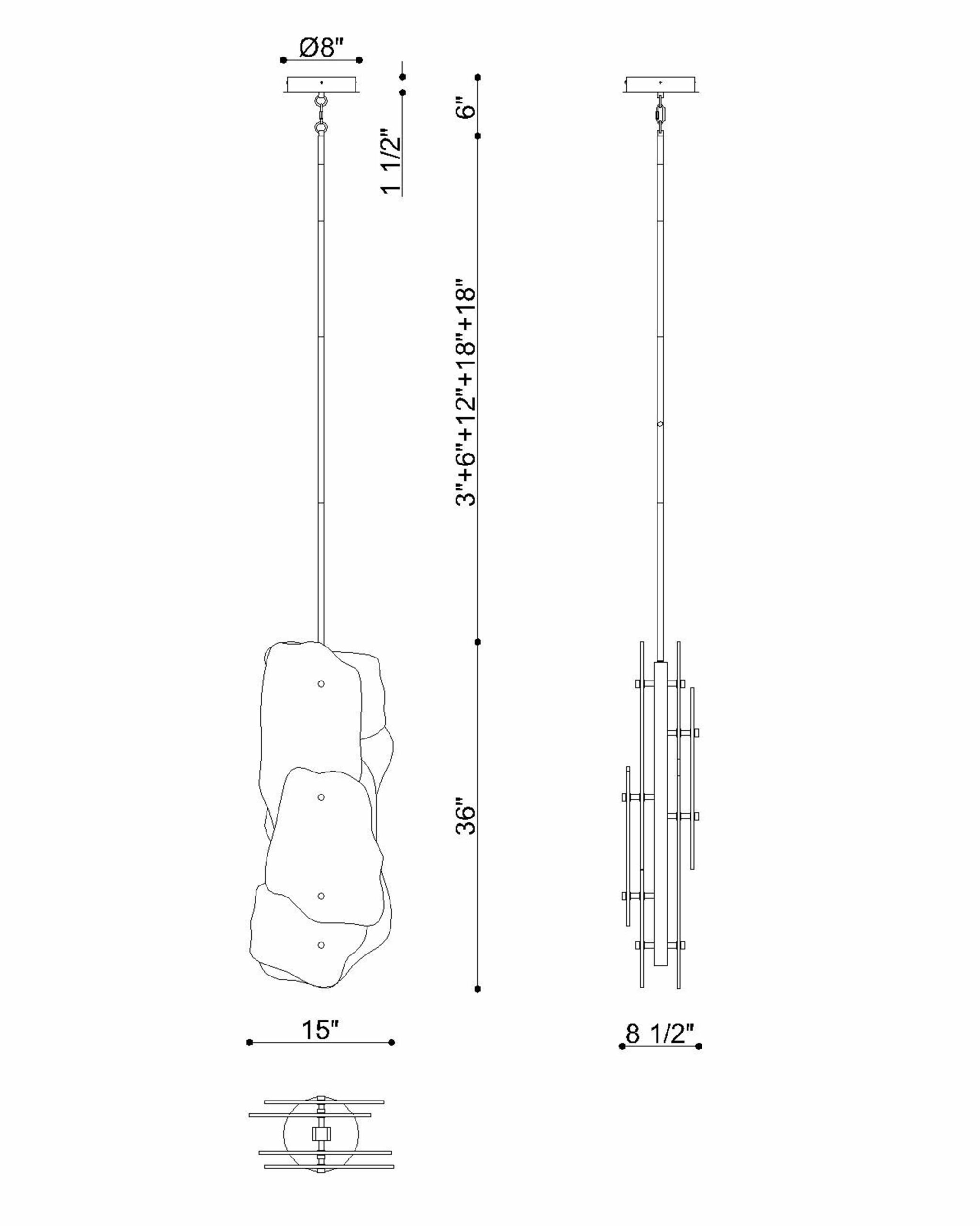 Grotto, Pendant, 36", Polished Nickel, Mixed Glass