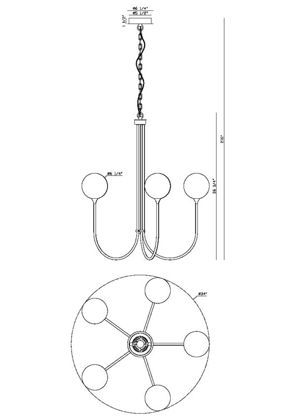 Iissa, Chandelier, 5-Light, 34", Gold, Clear Glass