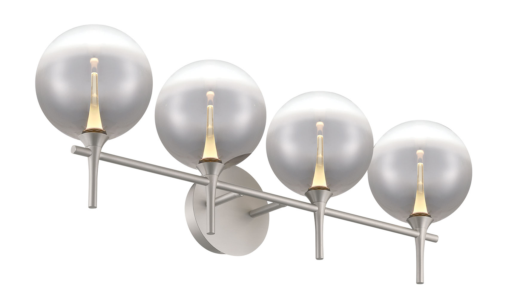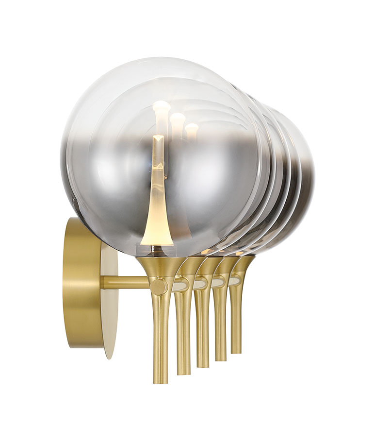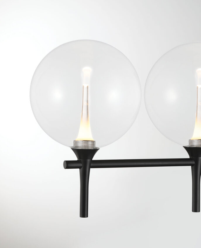 Inside each globe, a sleek internal spear refracts light with quiet intensity. The effect is warm and luminous, casting soft highlights that shift with your surroundings. Whether installed above a mirror or in a hallway, the Iissa Vanity creates a glow that feels as intentional as it looks.