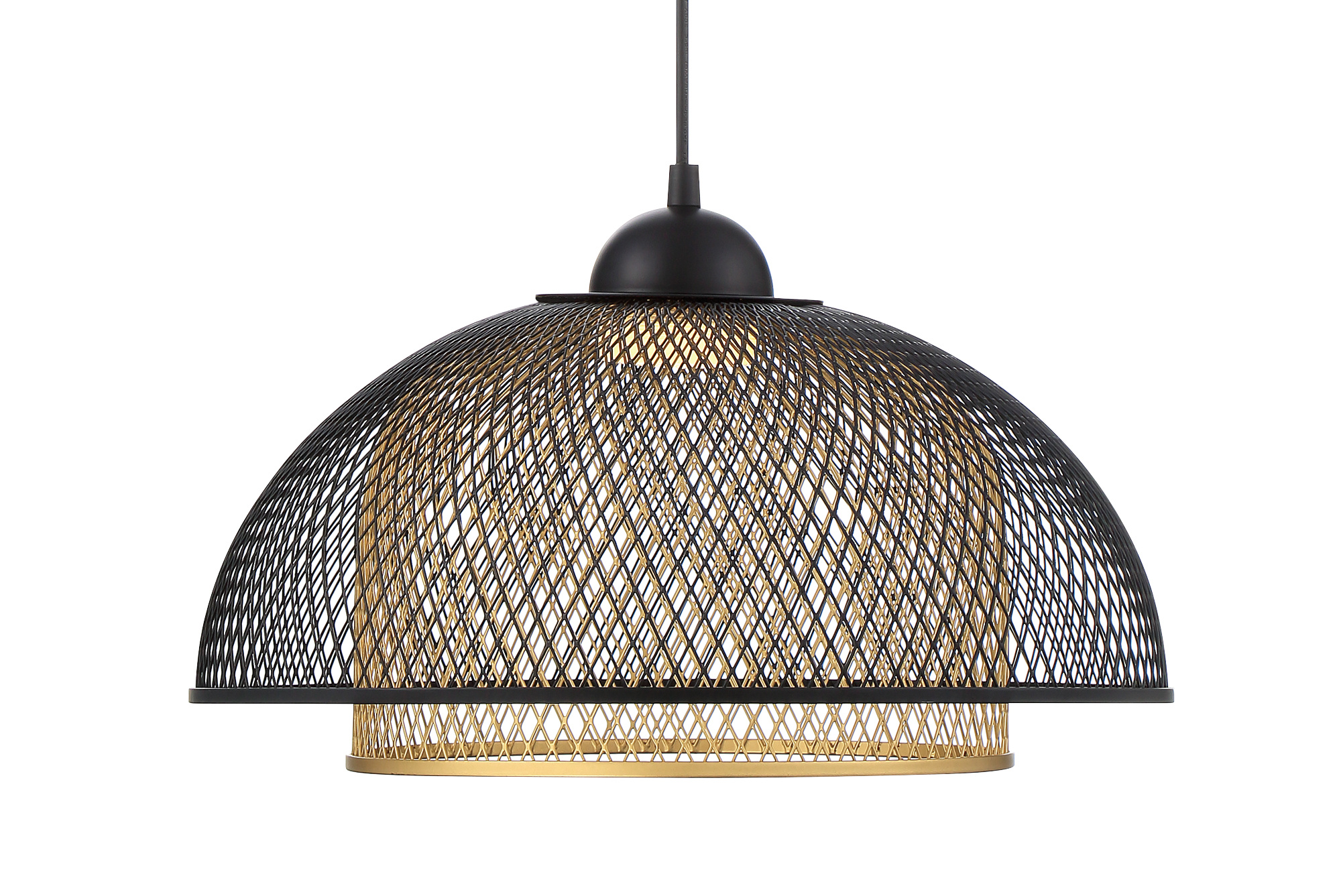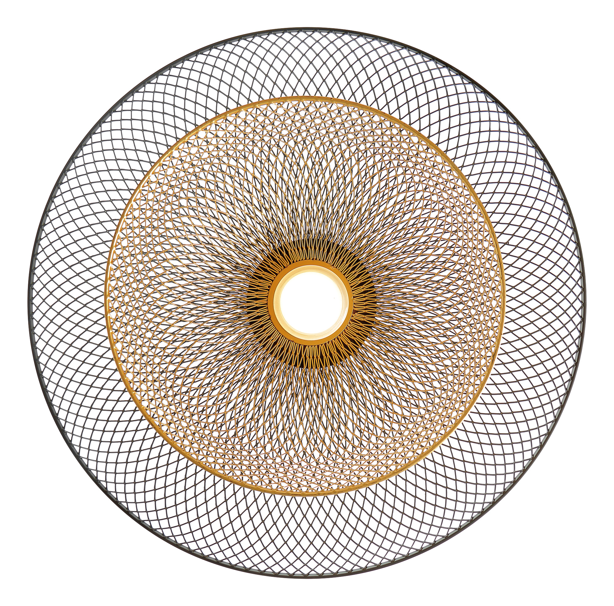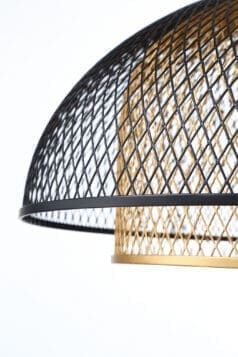 A delicate mesh shade hangs from a single rod, shaping dazzling light patterns across your walls. Quietly unwind with added cozy ambience thanks to its retro design elements and rich finishes.
