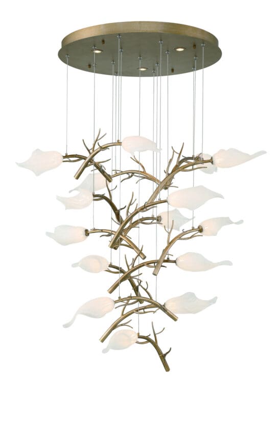 Matera, Chandelier, 15-Light, 34", Antique Gold, White Glass