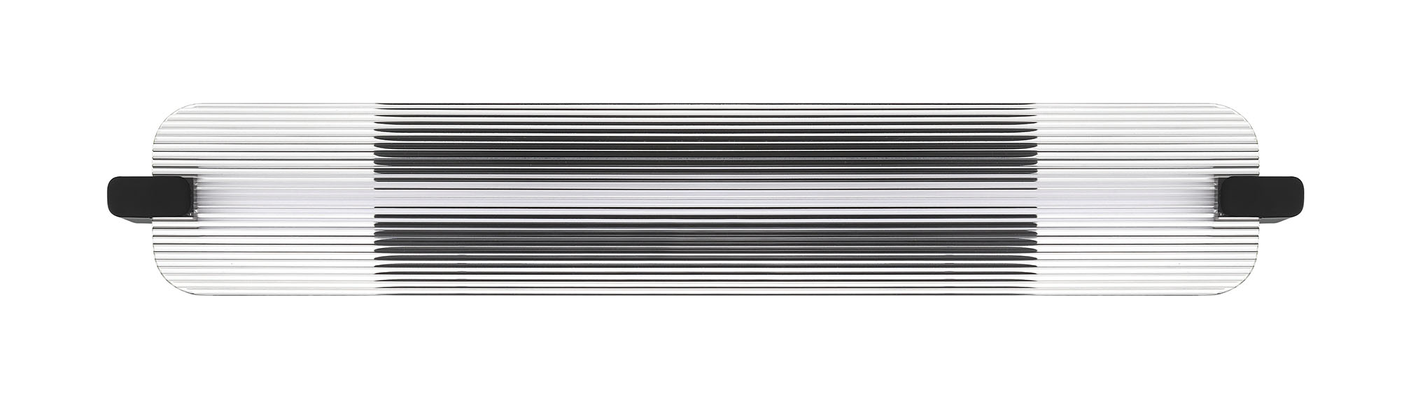 Ribbed glass panels glow evenly within a streamlined exterior frame, offering clarity by day and warmth after dark. The geometry feels deliberate and composed, allowing texture and proportion to carry the visual story. Neoness delivers quiet architectural light with subtle material depth.