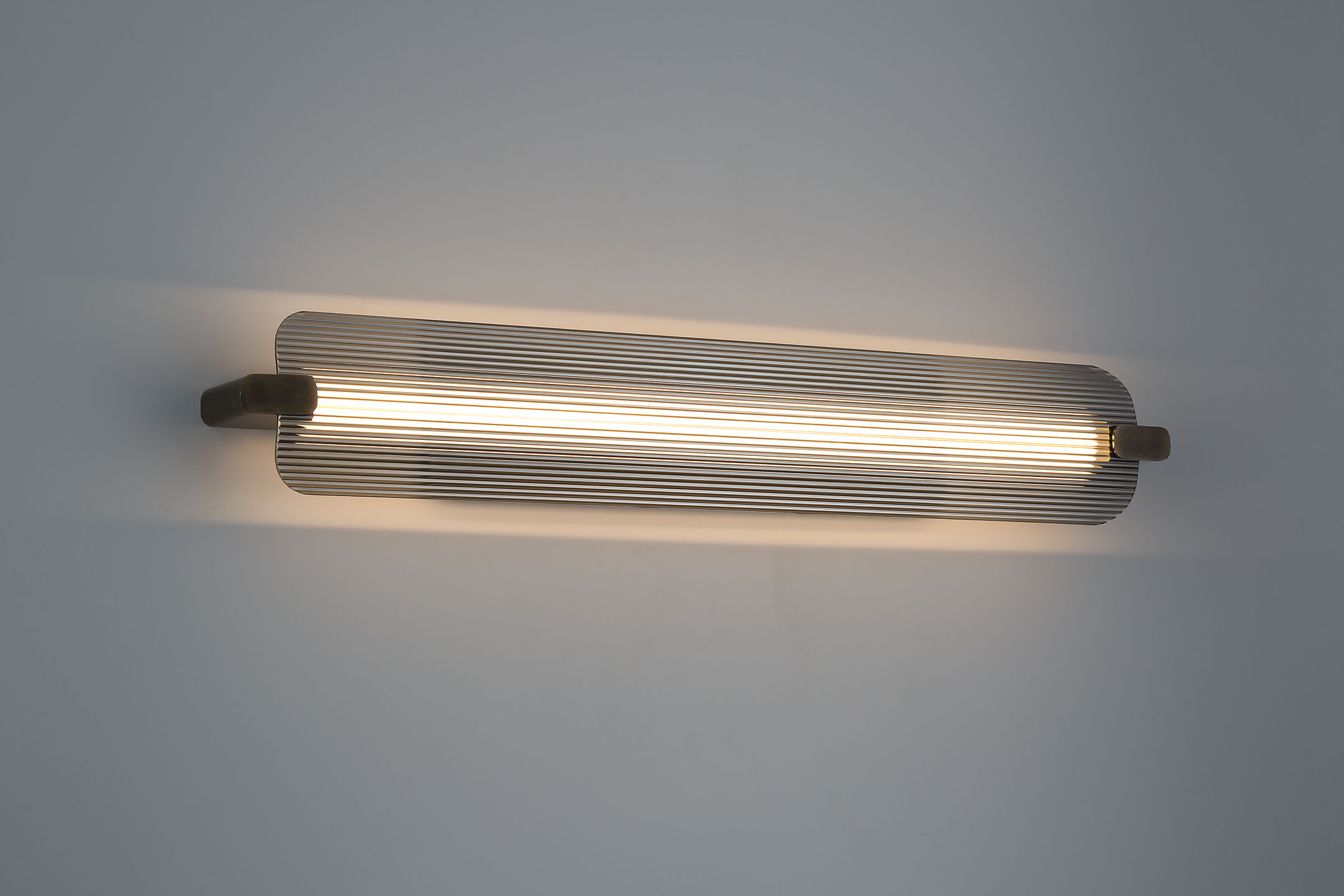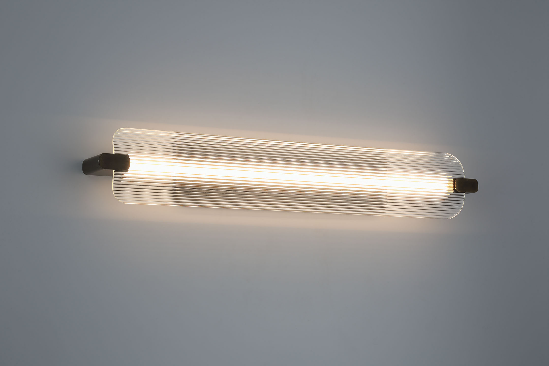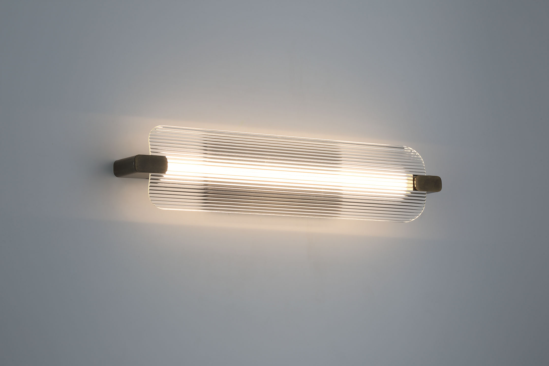 A clean illuminated outline defines the fixture's design, with ribbed glass softening the light as it moves across the surface. The vertical composition feels architectural and deliberate, allowing texture and proportion to lead the visual experience. Balanced between clarity and diffusion, Neoness delivers a crisp yet restrained presence along the wall.