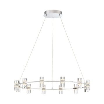Cylindrically shaped clear and frosted acrylic are split upon a chrome frame. Revel in its unique view as the cylinders reflect its surroundings through the different opacities.