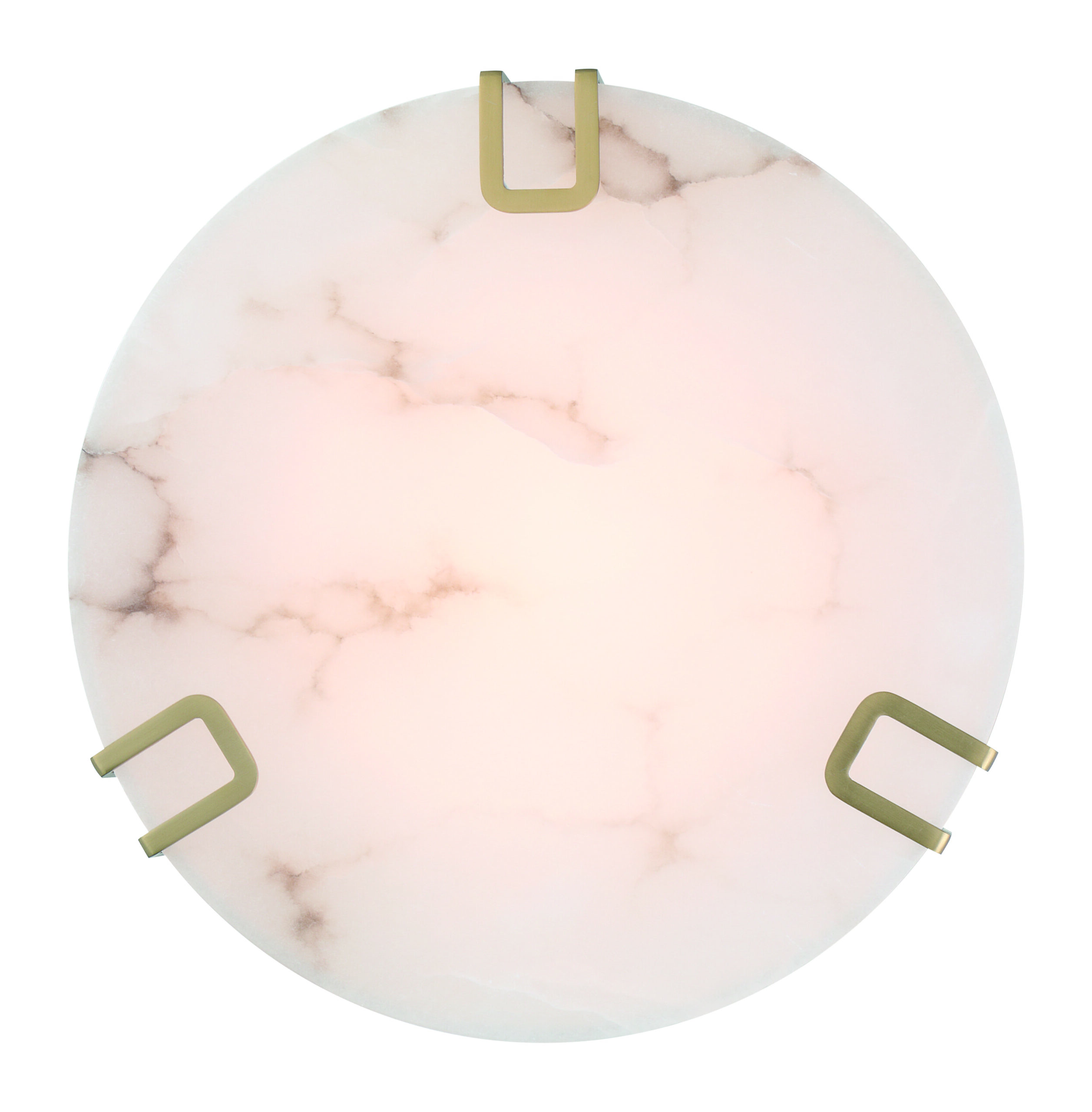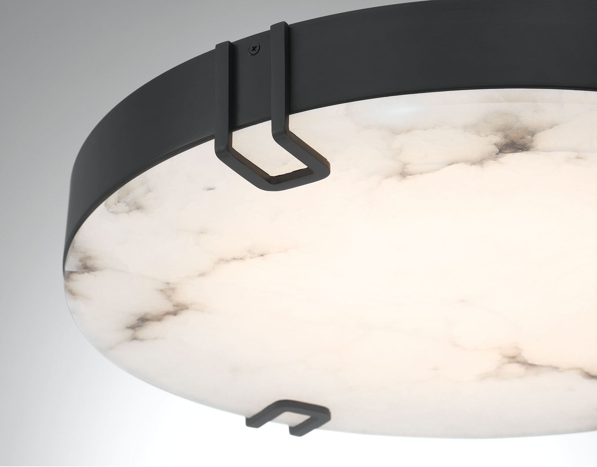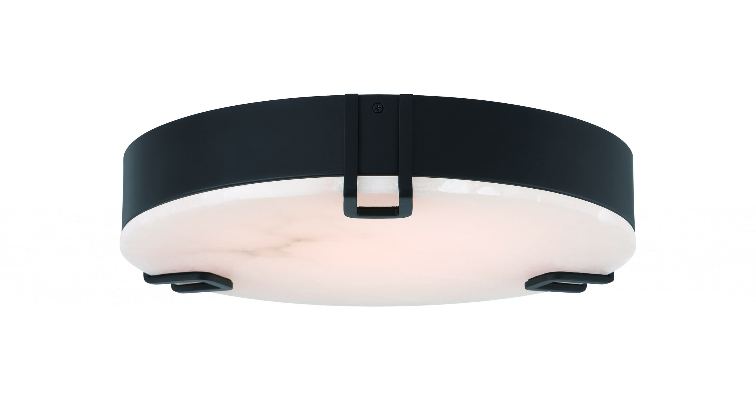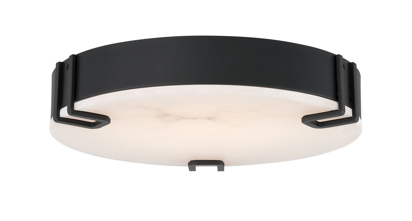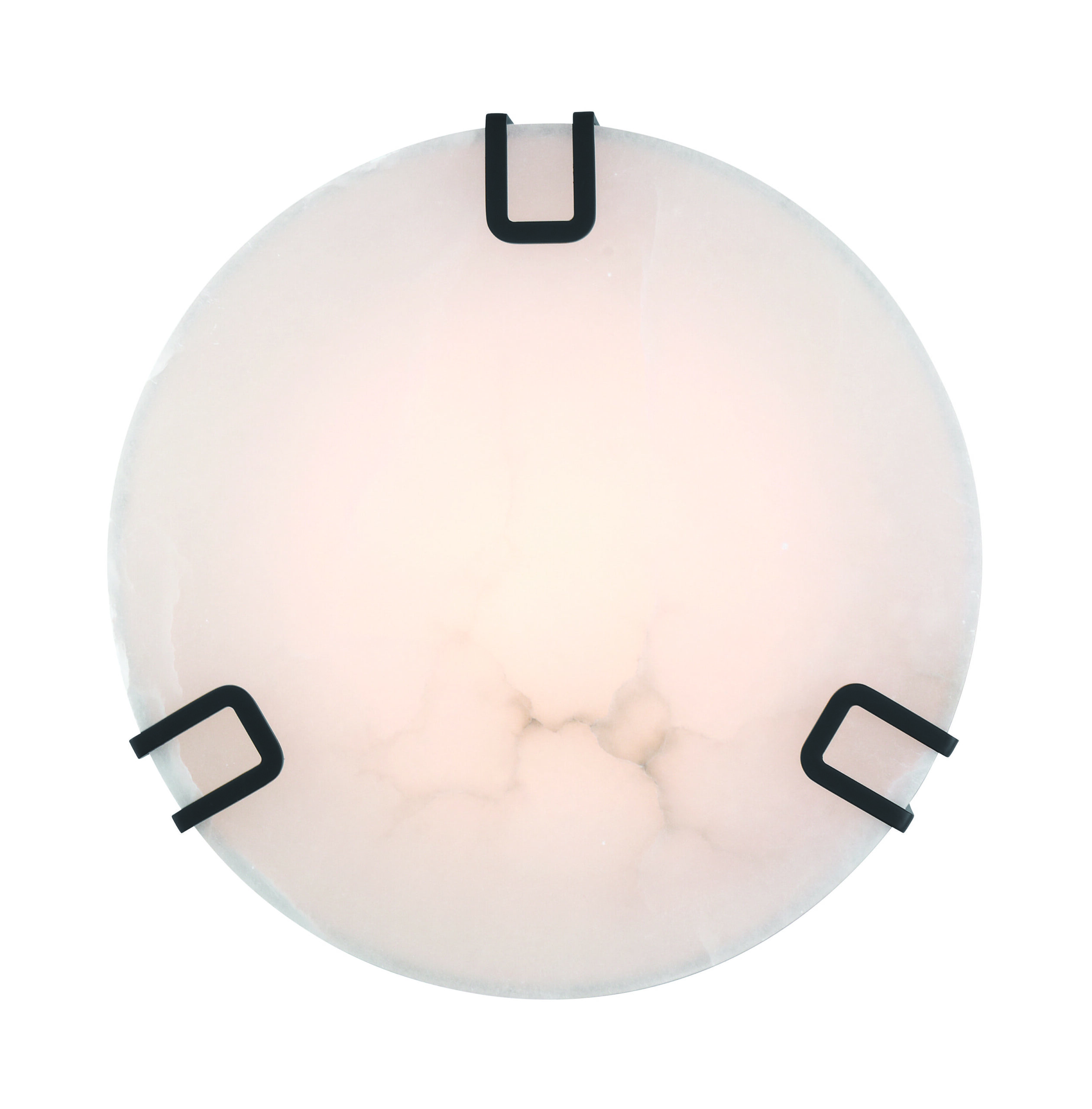 The Noga flush mount blends understated form with the timeless character of alabaster. Its slim silhouette fits cleanly onto ceilings, letting the beauty of the stone shine in bedrooms, hallways, and common areas.