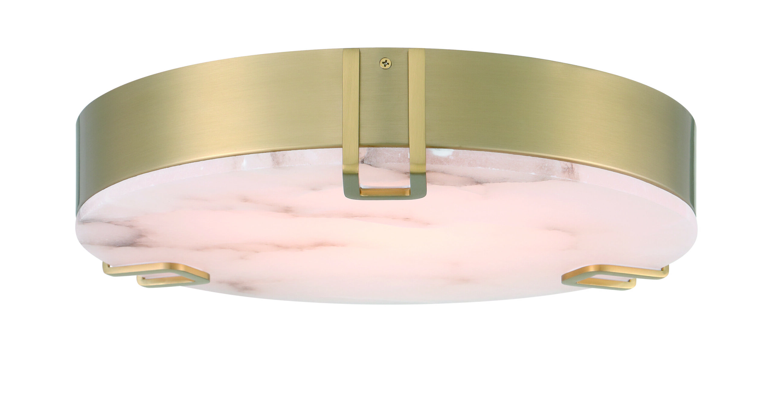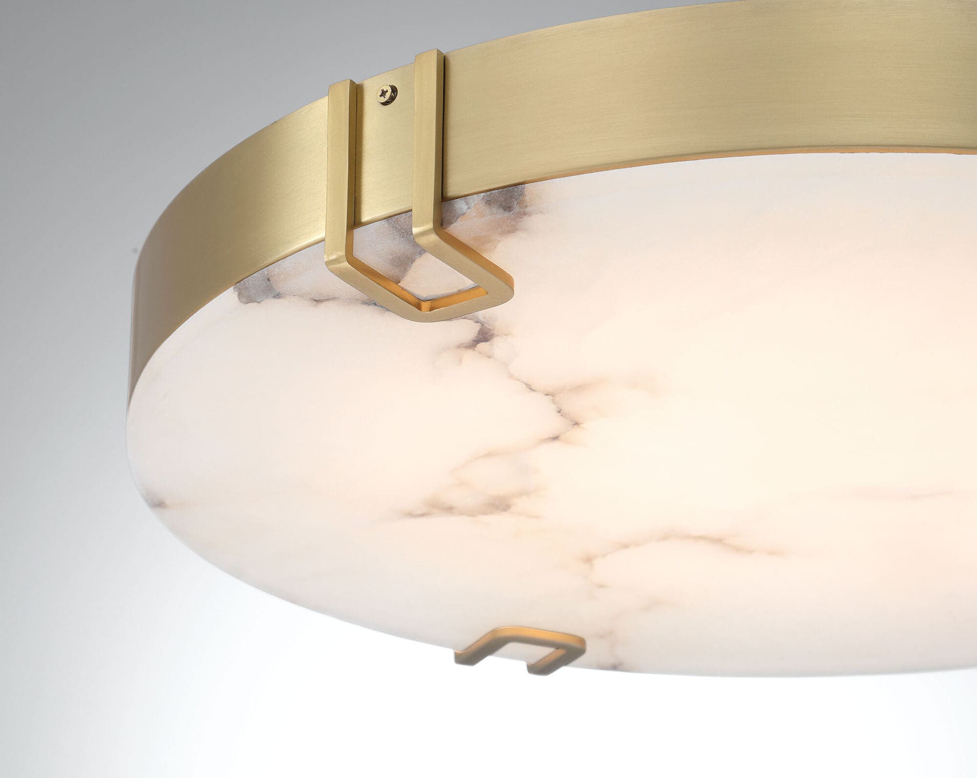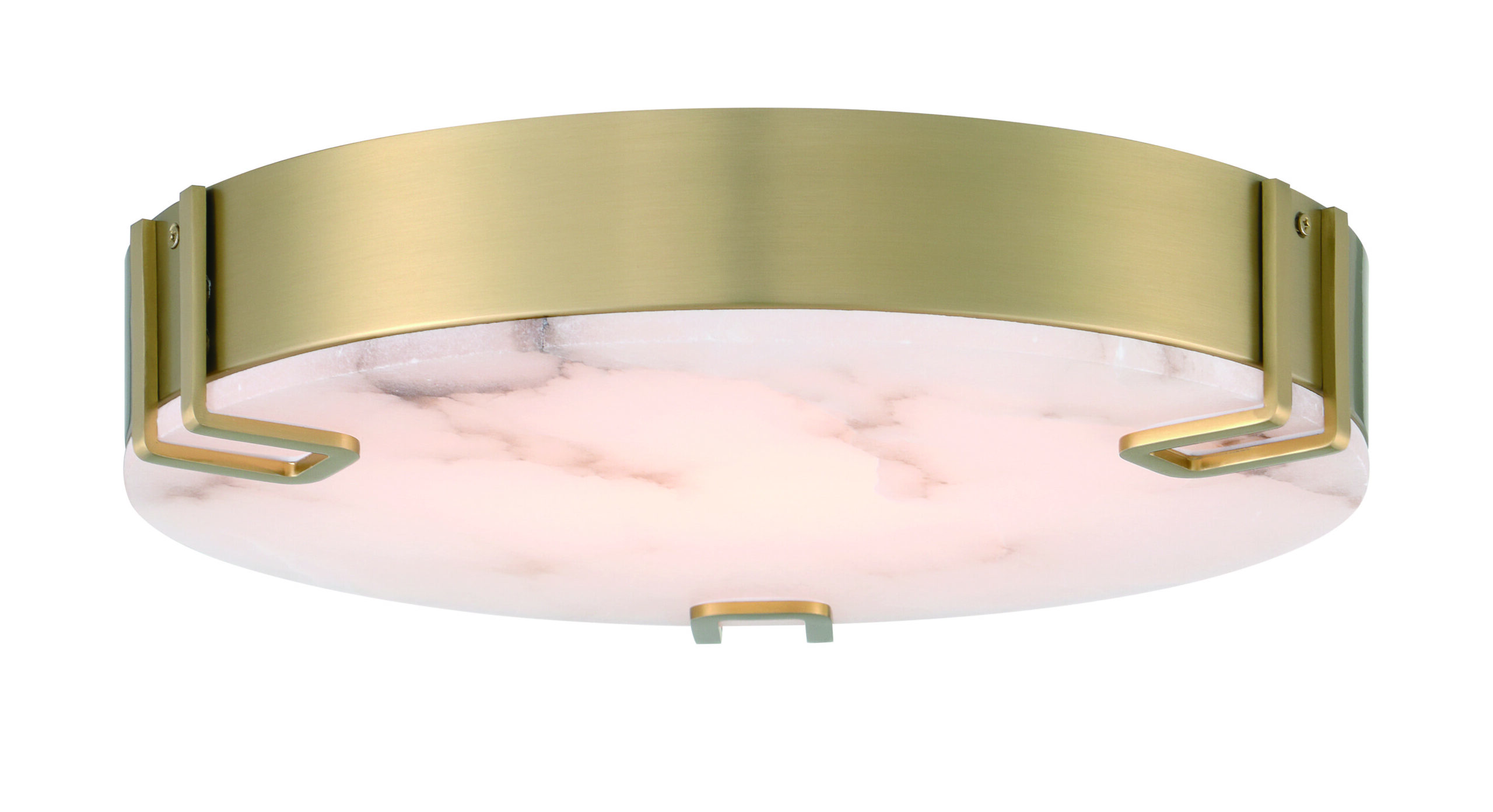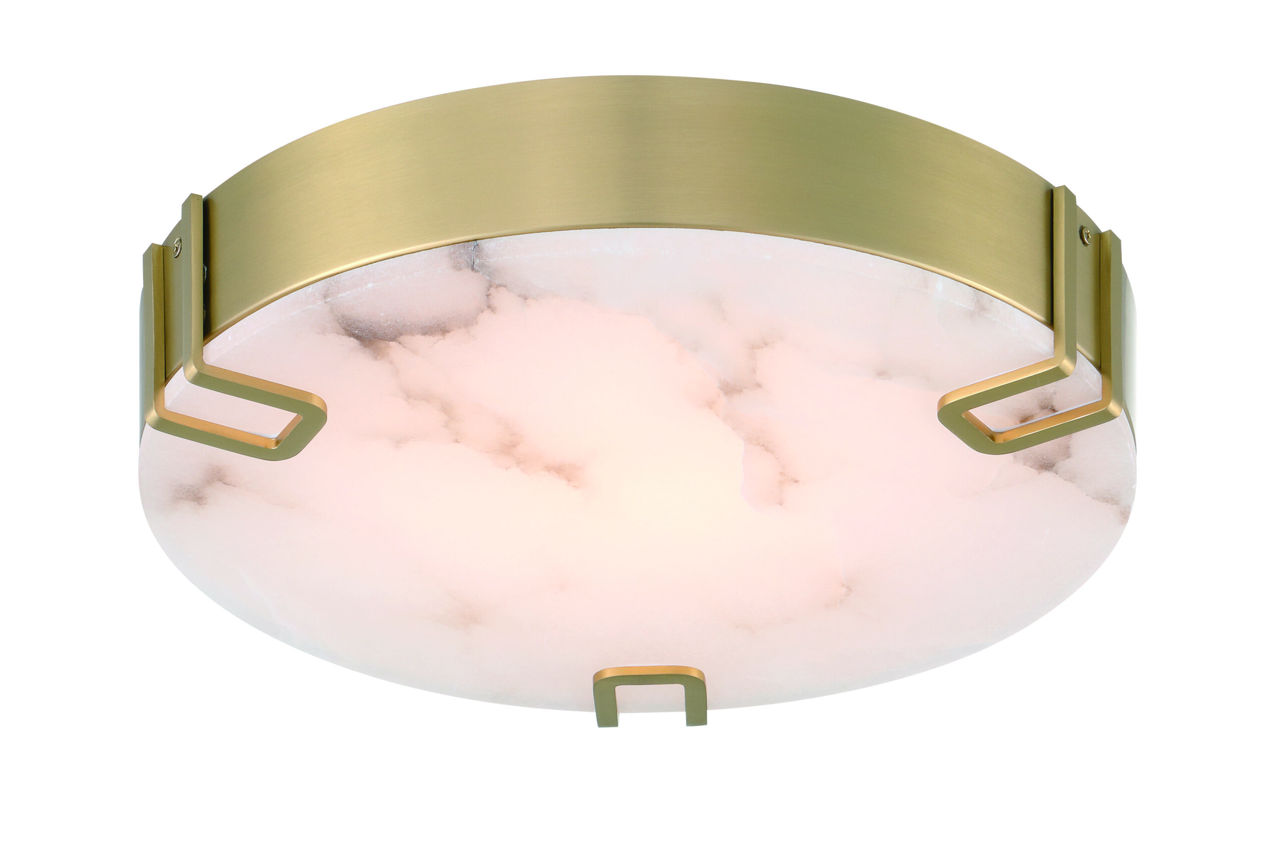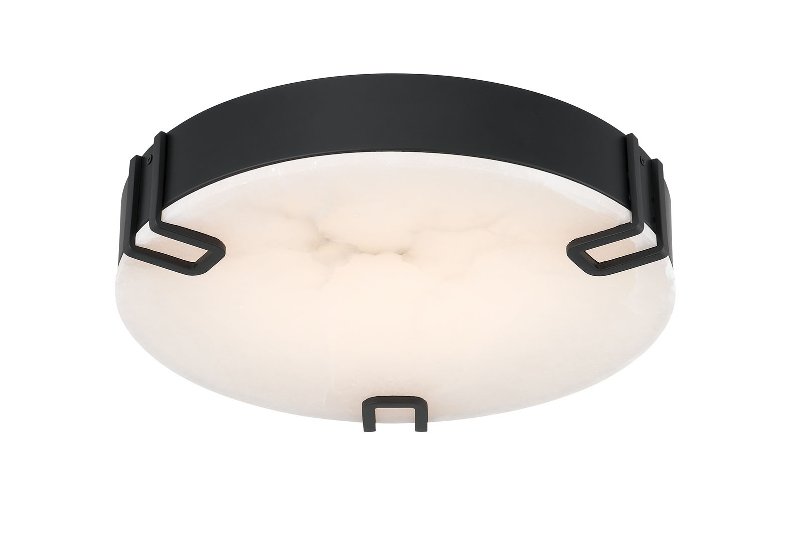 The Noga flush mount blends understated form with the timeless character of alabaster. Its slim silhouette fits cleanly onto ceilings, letting the beauty of the stone shine in bedrooms, hallways, and common areas.