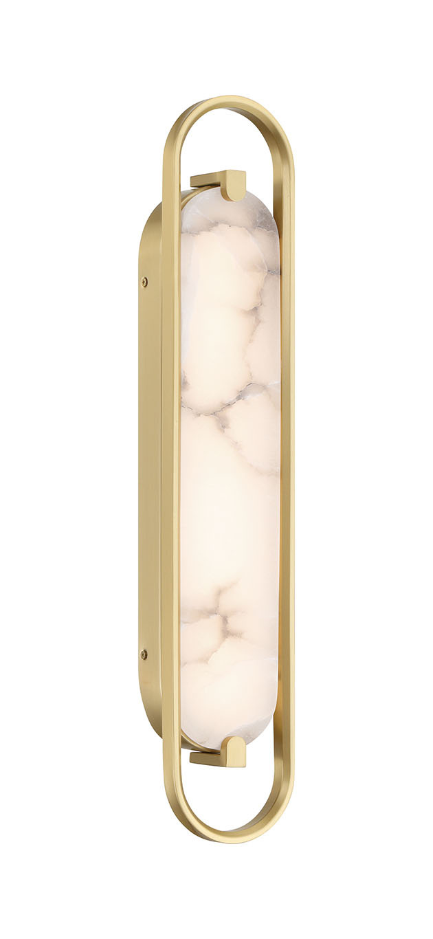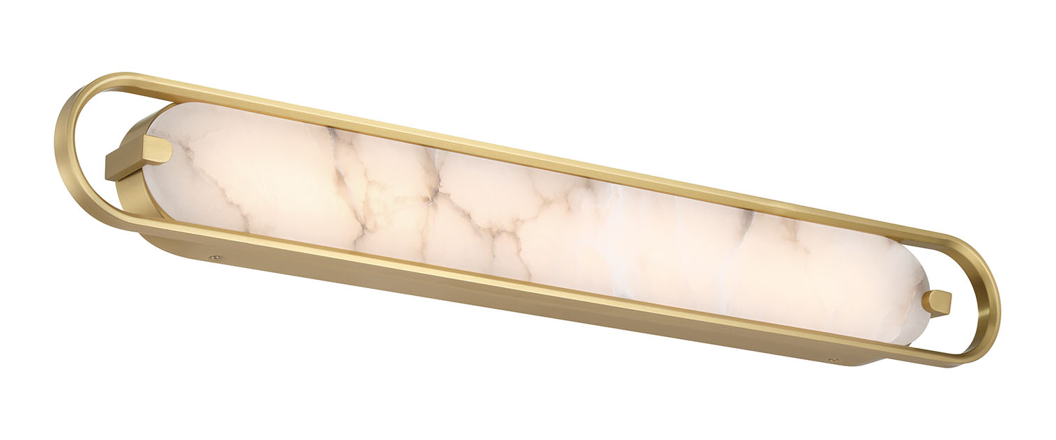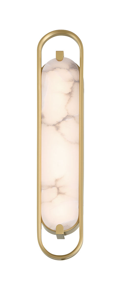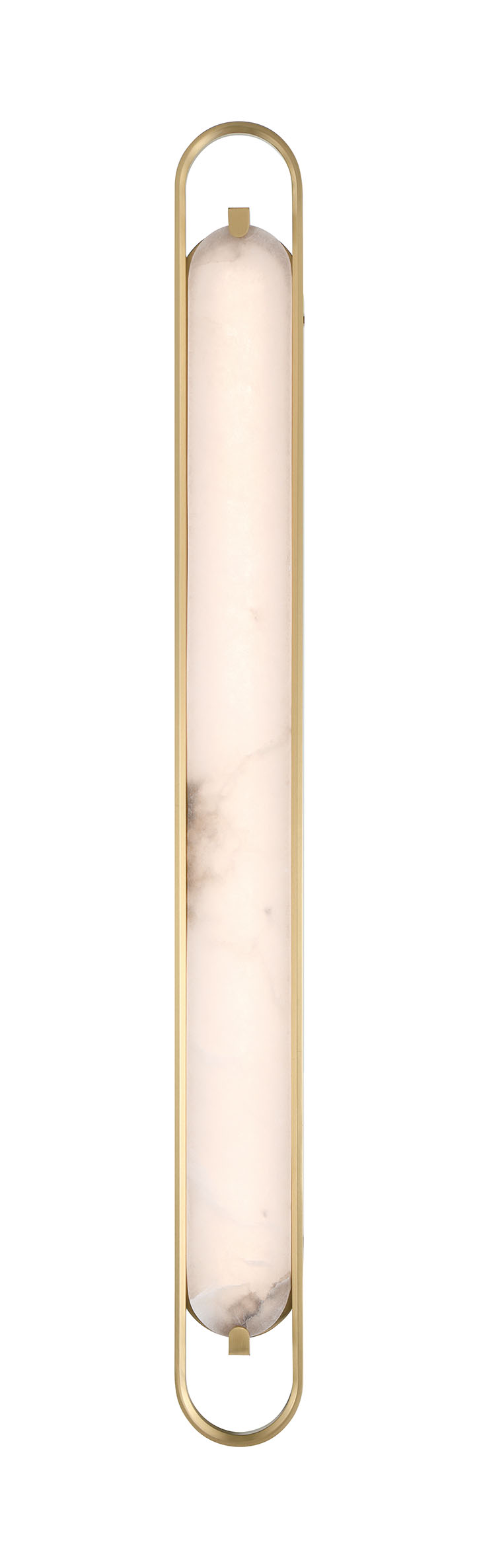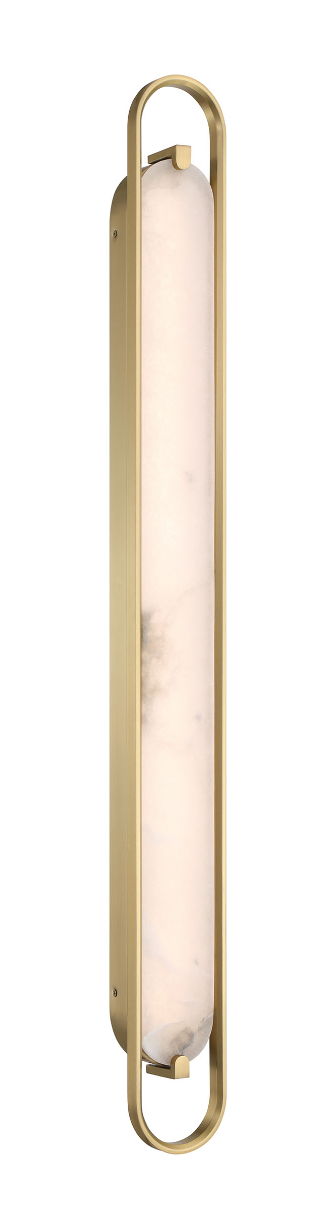 Designed for bathrooms and powder rooms, the Noga vanity light showcases a single slab of natural alabaster. Each piece is one of a kind, with organic veining that turns functional lighting into a refined design statement.