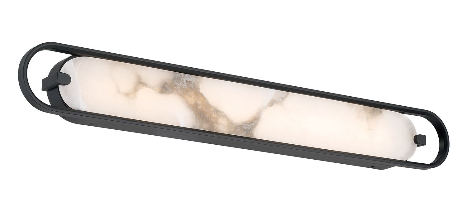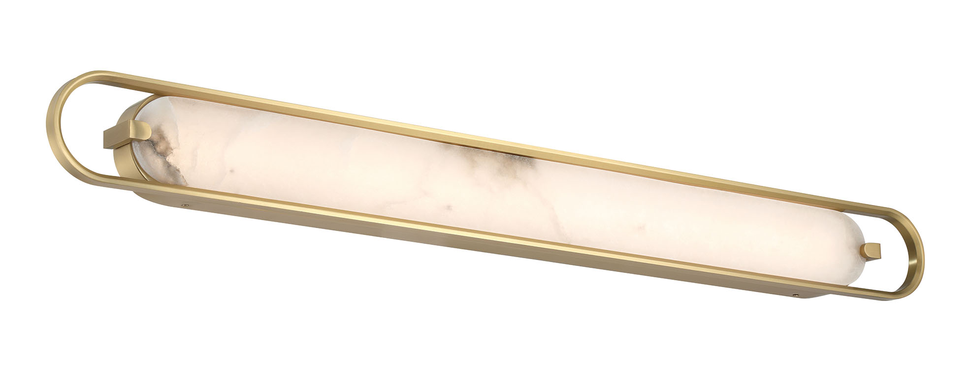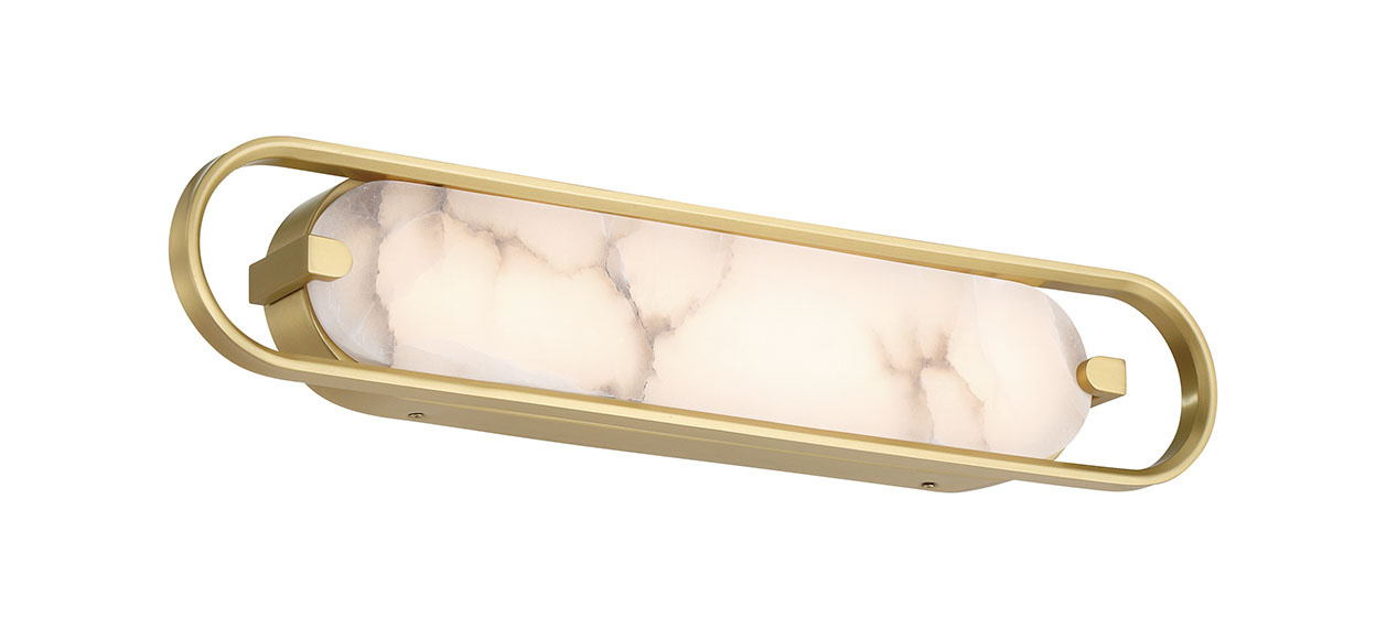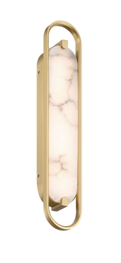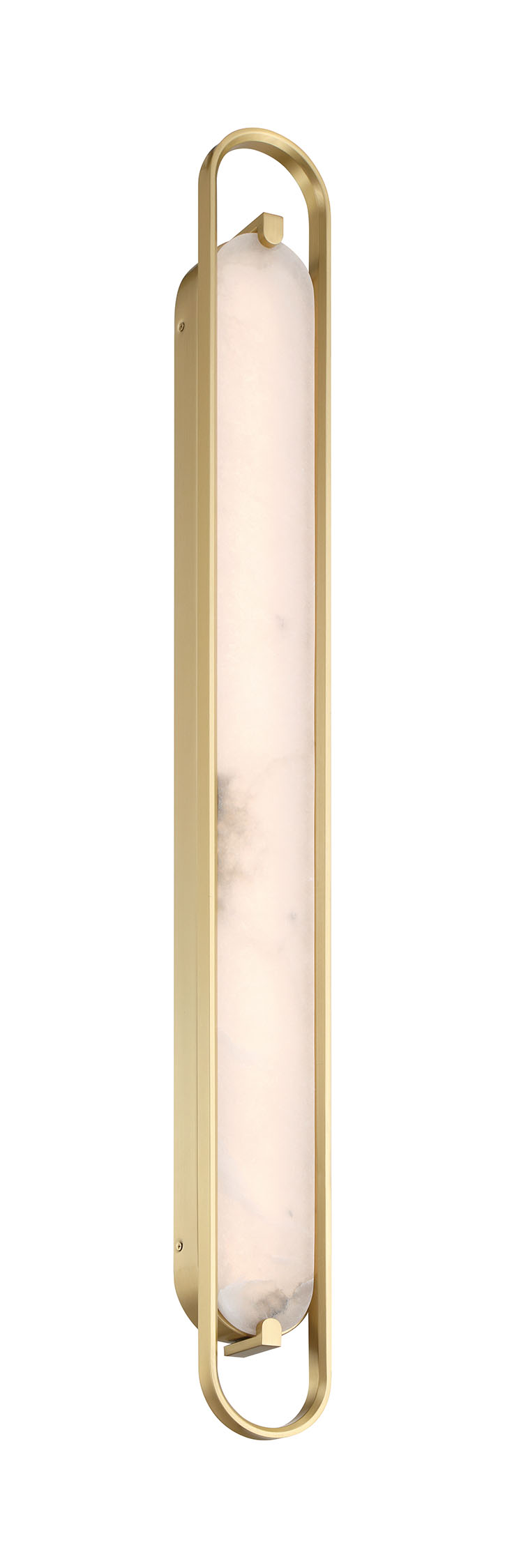 Designed for bathrooms and powder rooms, the Noga vanity light showcases a single slab of natural alabaster. Each piece is one of a kind, with organic veining that turns functional lighting into a refined design statement.