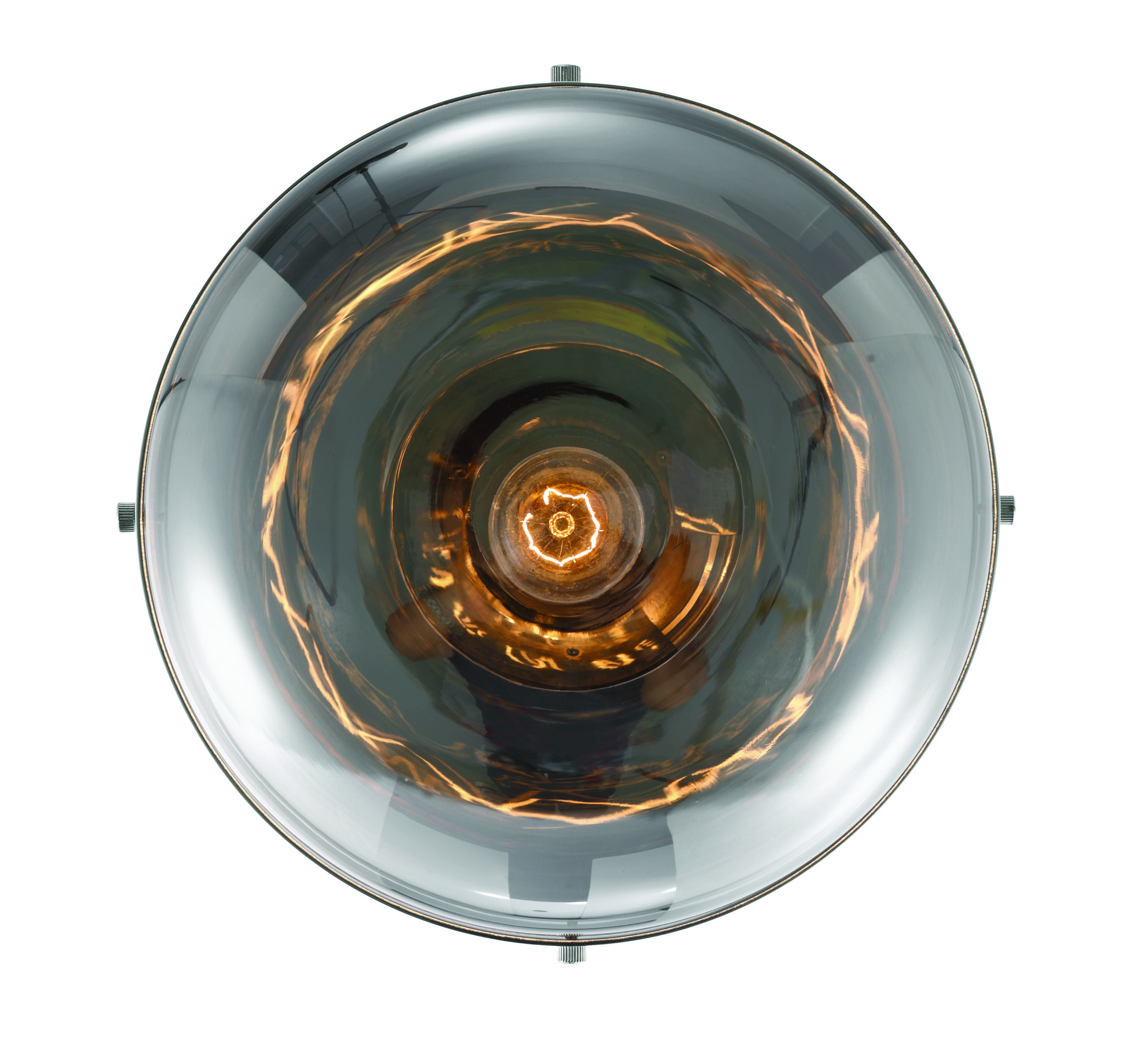 The sturdy metal support offers a bold counterpoint to the smooth glass orbs, balancing the fixture’s clean, austere design with a touch of warmth and approachability.