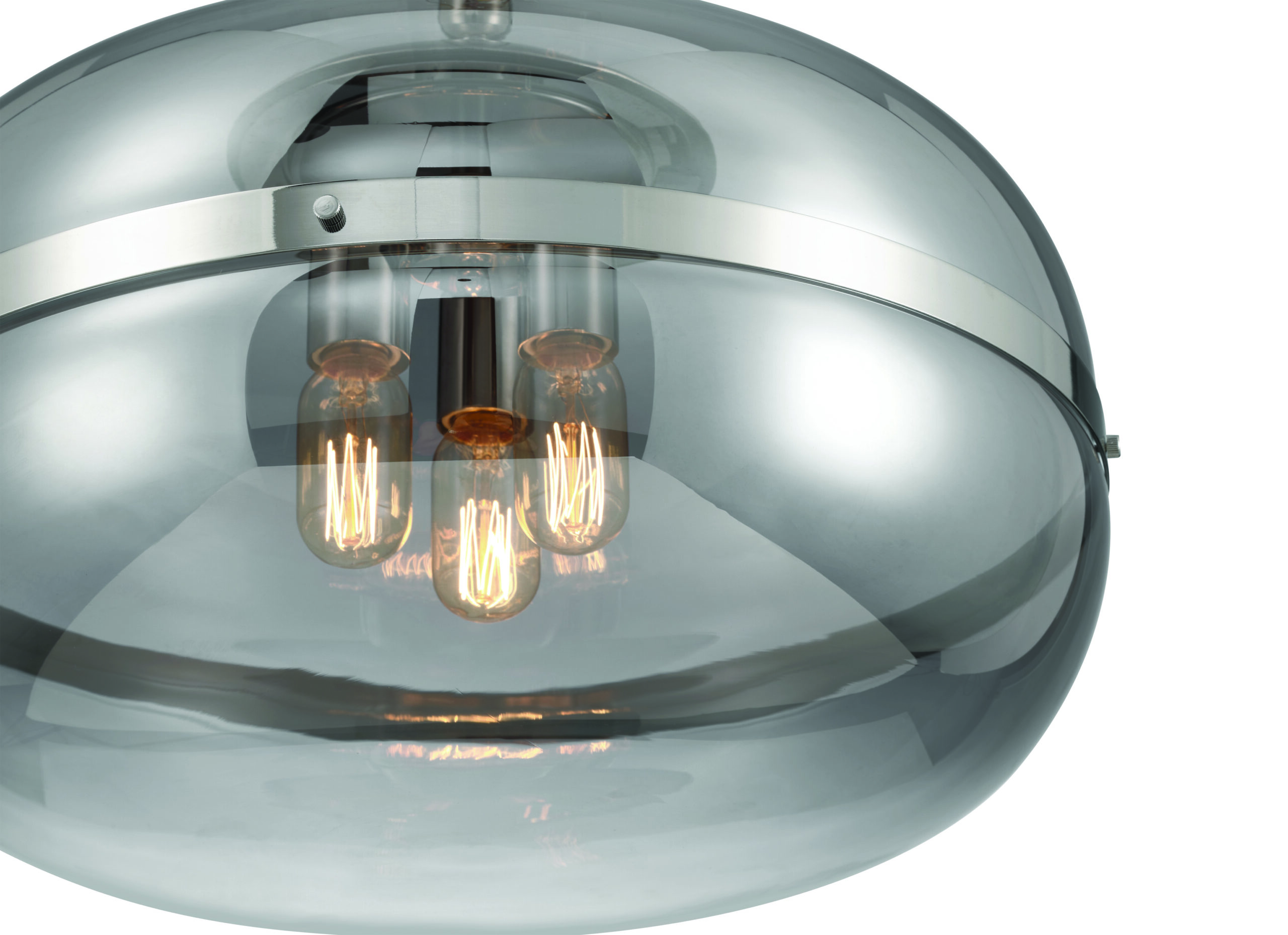 Nottingham features glass orbs each encircled by a sleek metal band. This subtle detail beautifully reflects the warm glow of vintage-inspired lights within, creating a captivating play of light and shadow.