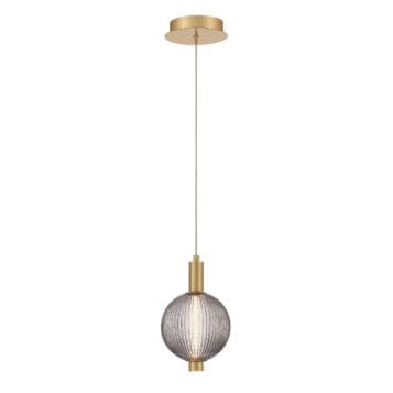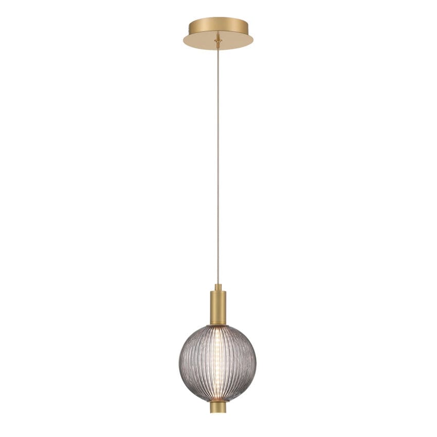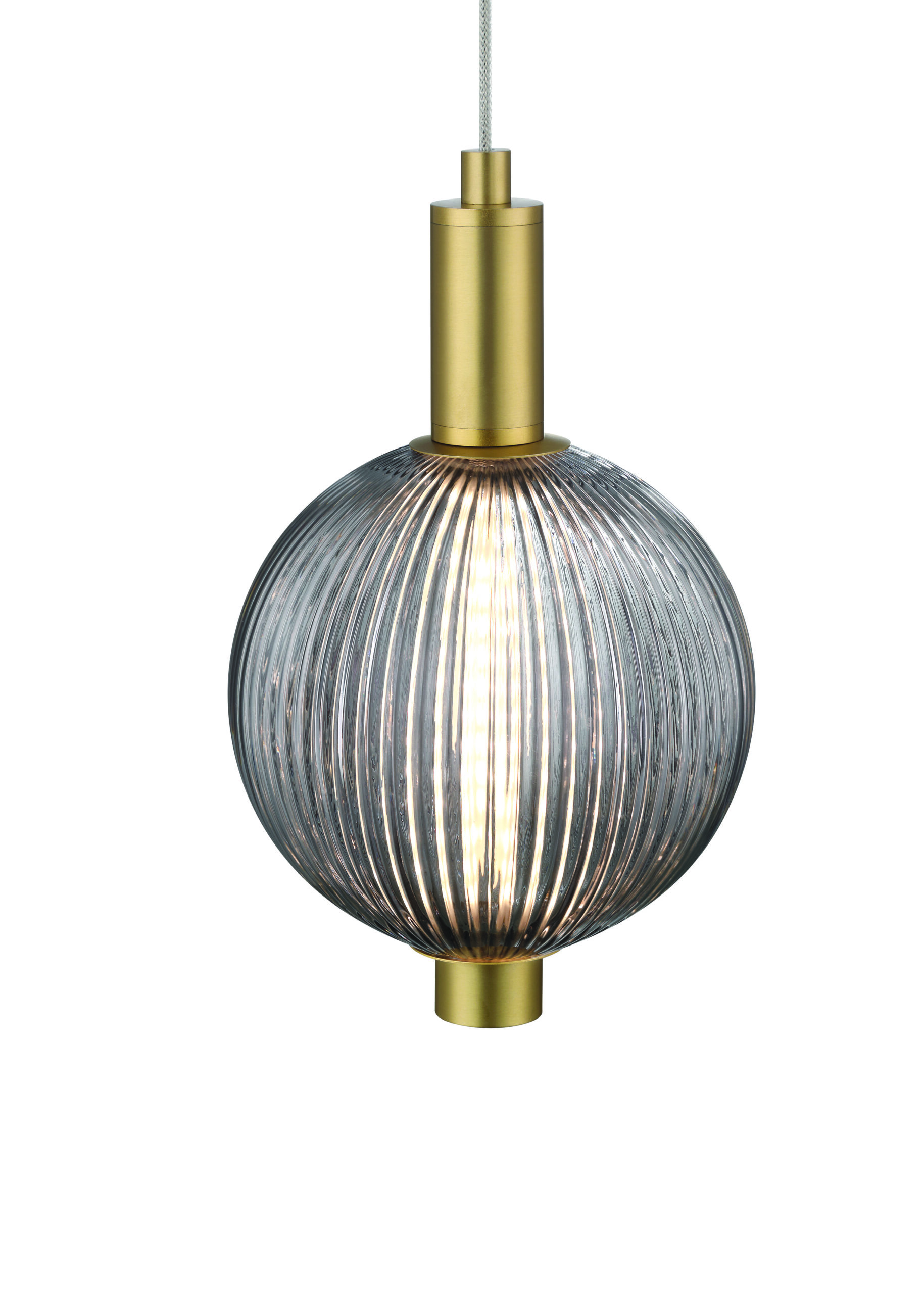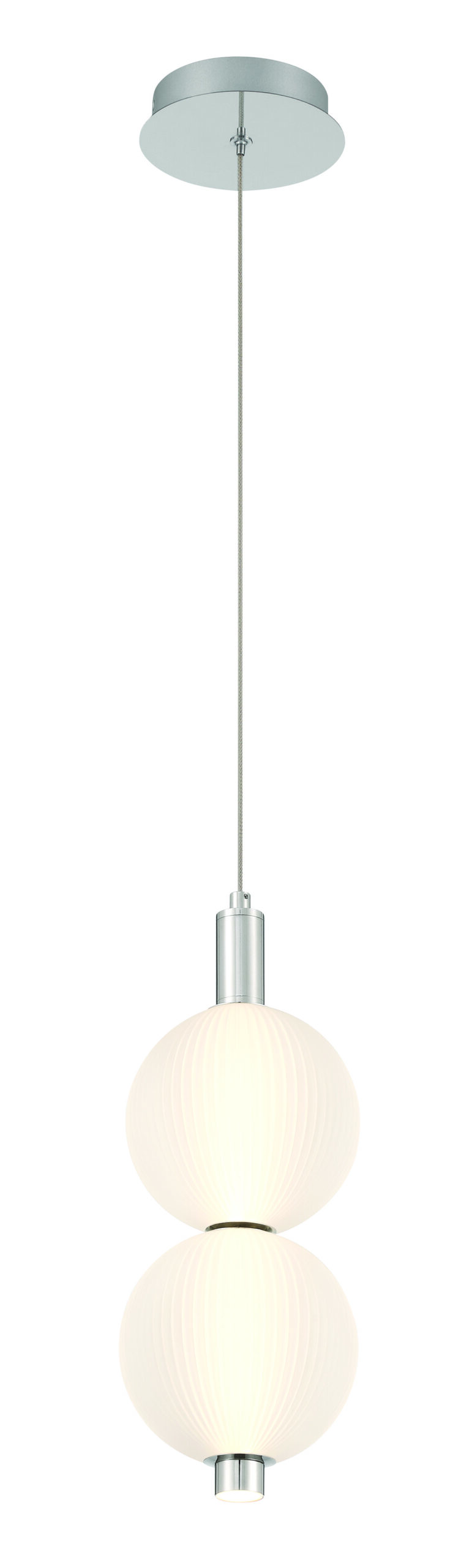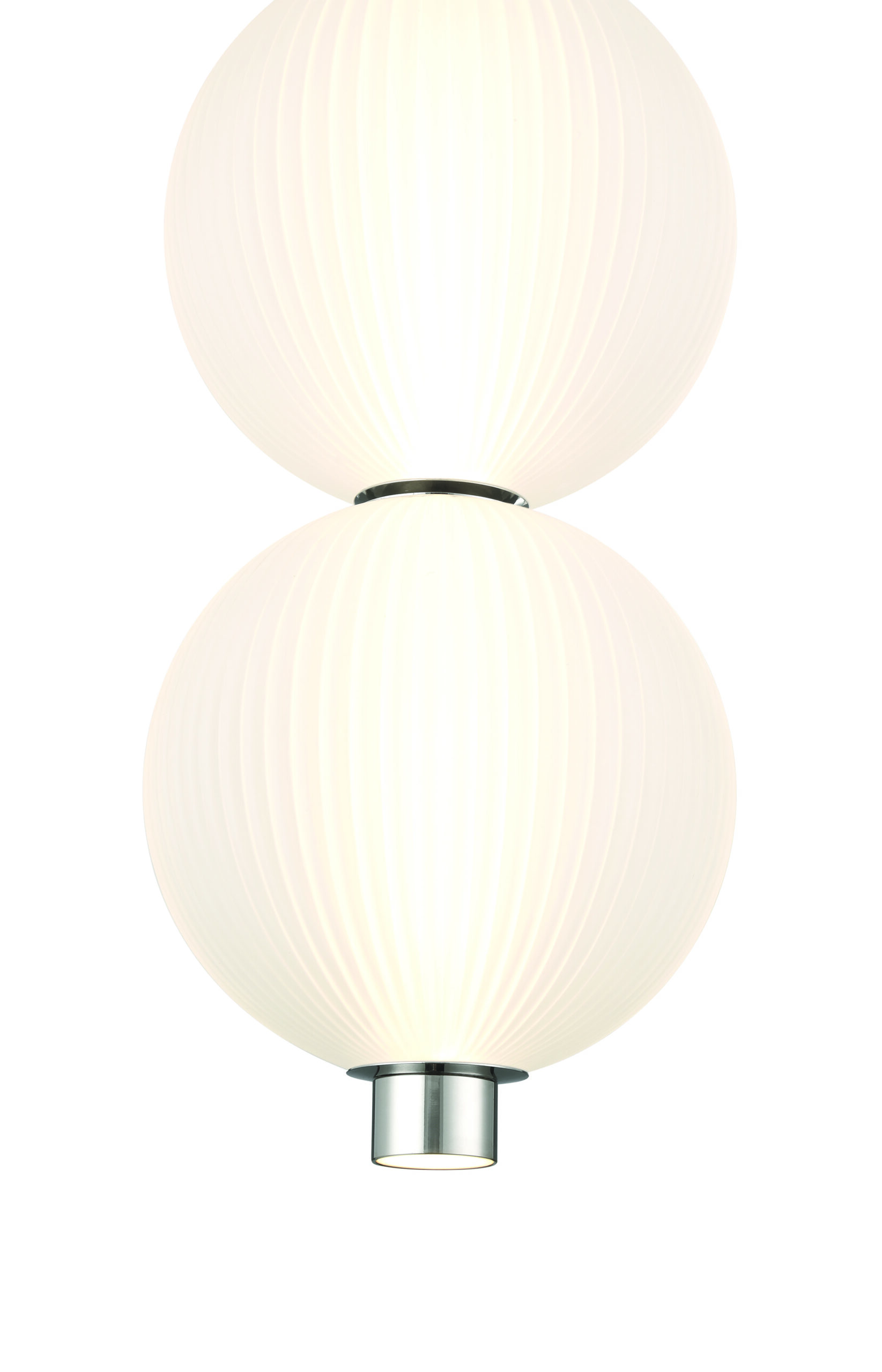 The ribbed spheres encasing the light shaft add subtle texture and visual interest, creating a soft glow that enhances the fixture’s graceful silhouette. The result is a lighting piece that feels both classic and contemporary.