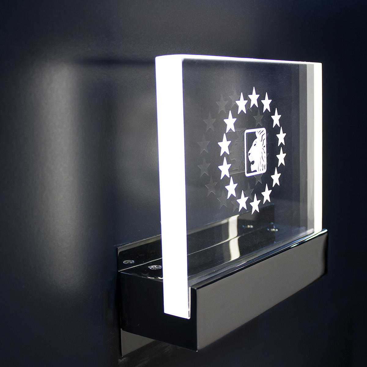 A clear acrylic sign is mounted on an integrated LED base to provide clear illumination. This perfect wayfinding signage will promptly let your visitors know that they have arrived at their desired destination.