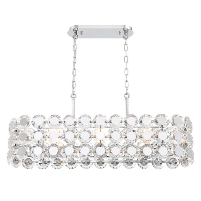 Our lavish Perrene collection is a true statement piece; ordained with coveted crystals, both sides showcase bevelled texture that brings dramatic elegance. The mirrored chrome center helps reflect the light for an even more opulent display of light. Indulge with the Perrene collection today.