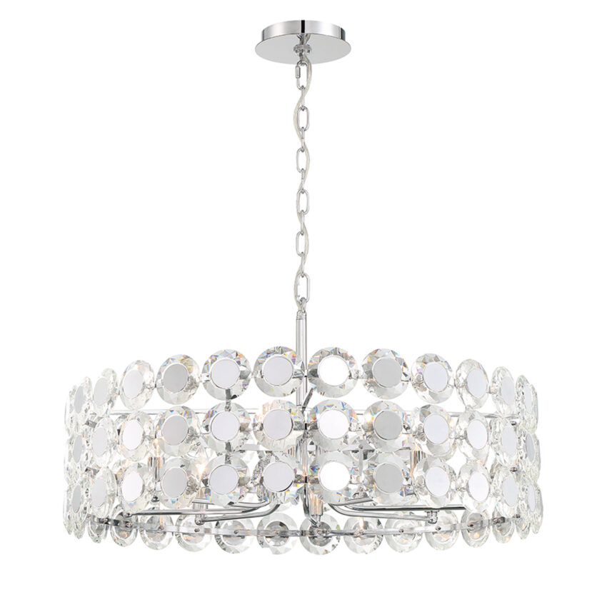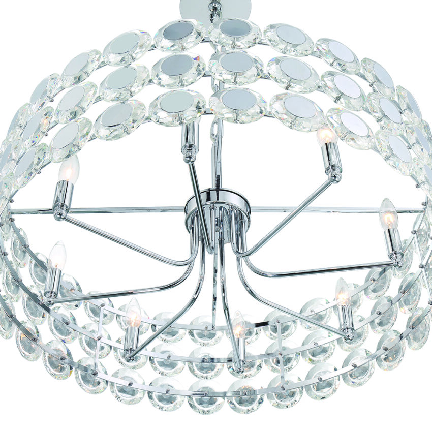 Perrene, Chandelier, 8-Light, 32", Chrome, Clear Glass