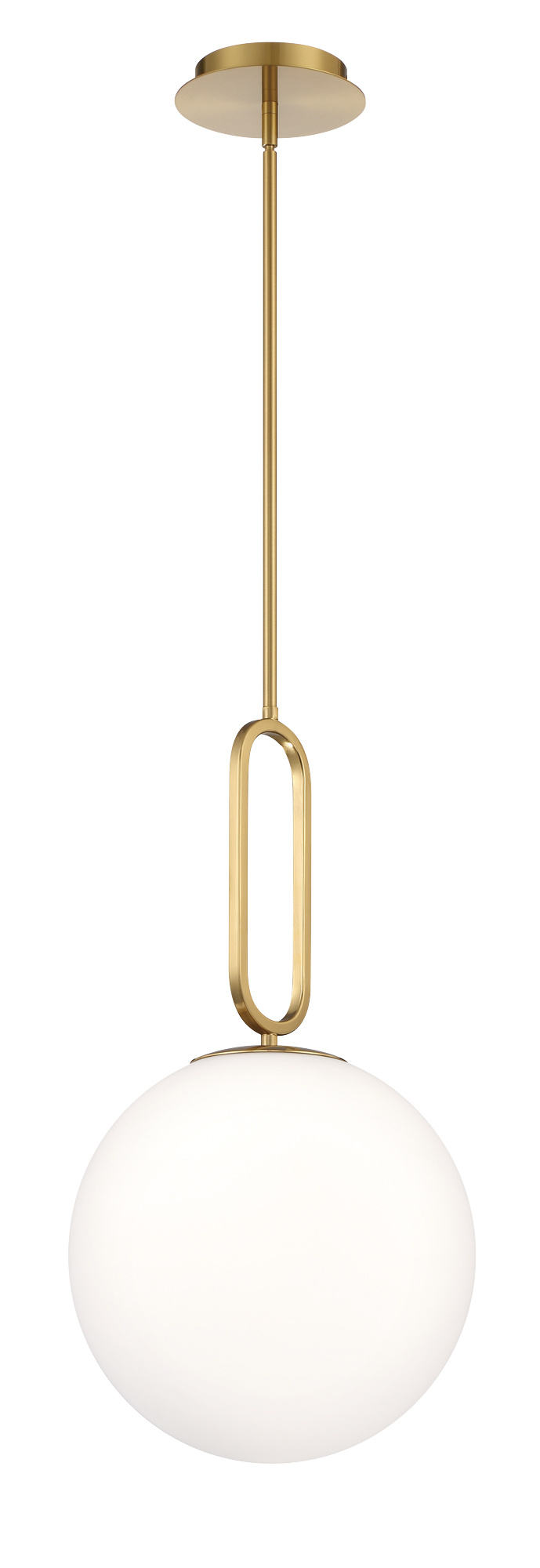 An opal white orb hangs below a distinguishing oval ring accent. This single adornment creates the perfect amount of style for this minimal design. A half-gold and half-clear orb is also available for added sophistication.