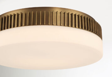 Strong vertical fins define the silhouette with architectural discipline, casting subtle rhythm and shadow across the surface. Glass diffusers beneath soften the structure with warm, even illumination. The balance of crisp lines and softened glow give Purgos a composed presence that feels both modern and enduring.