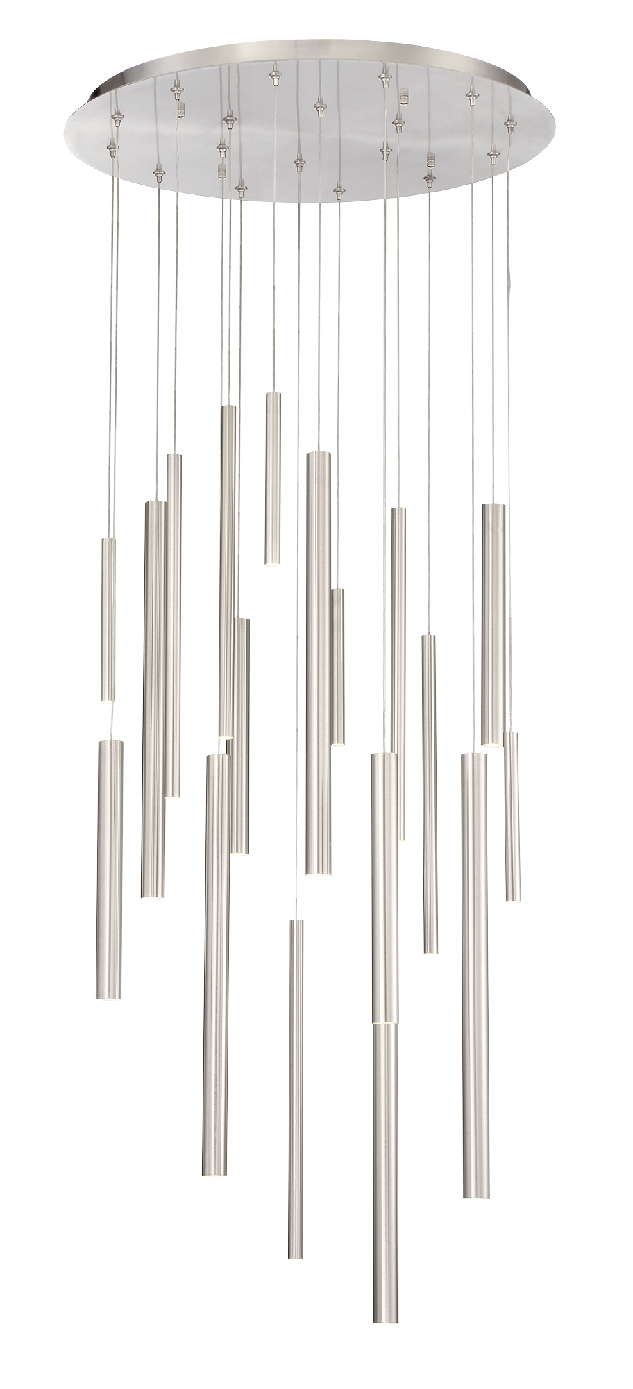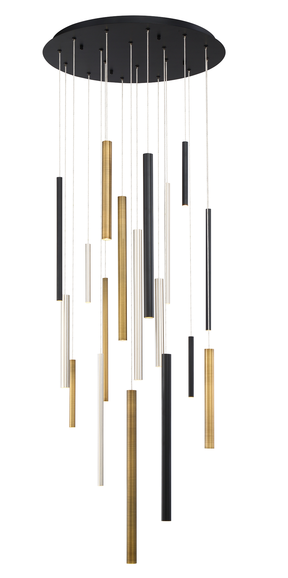 While rooted in sleek, modern design, Santana adds a playful twist through its varying tube sizes and staggered suspension. The subtle asymmetry creates a sense of rhythm and motion, making the fixture a kinetic sculpture that engages the eye from every angle.
