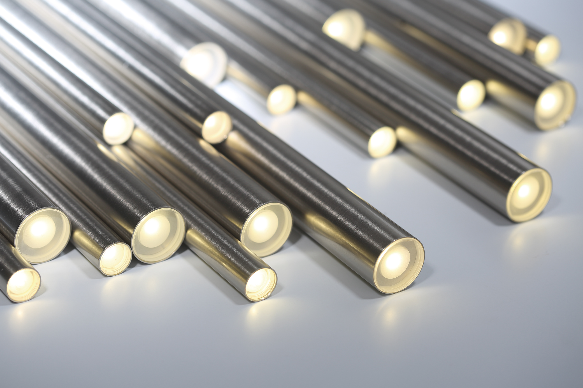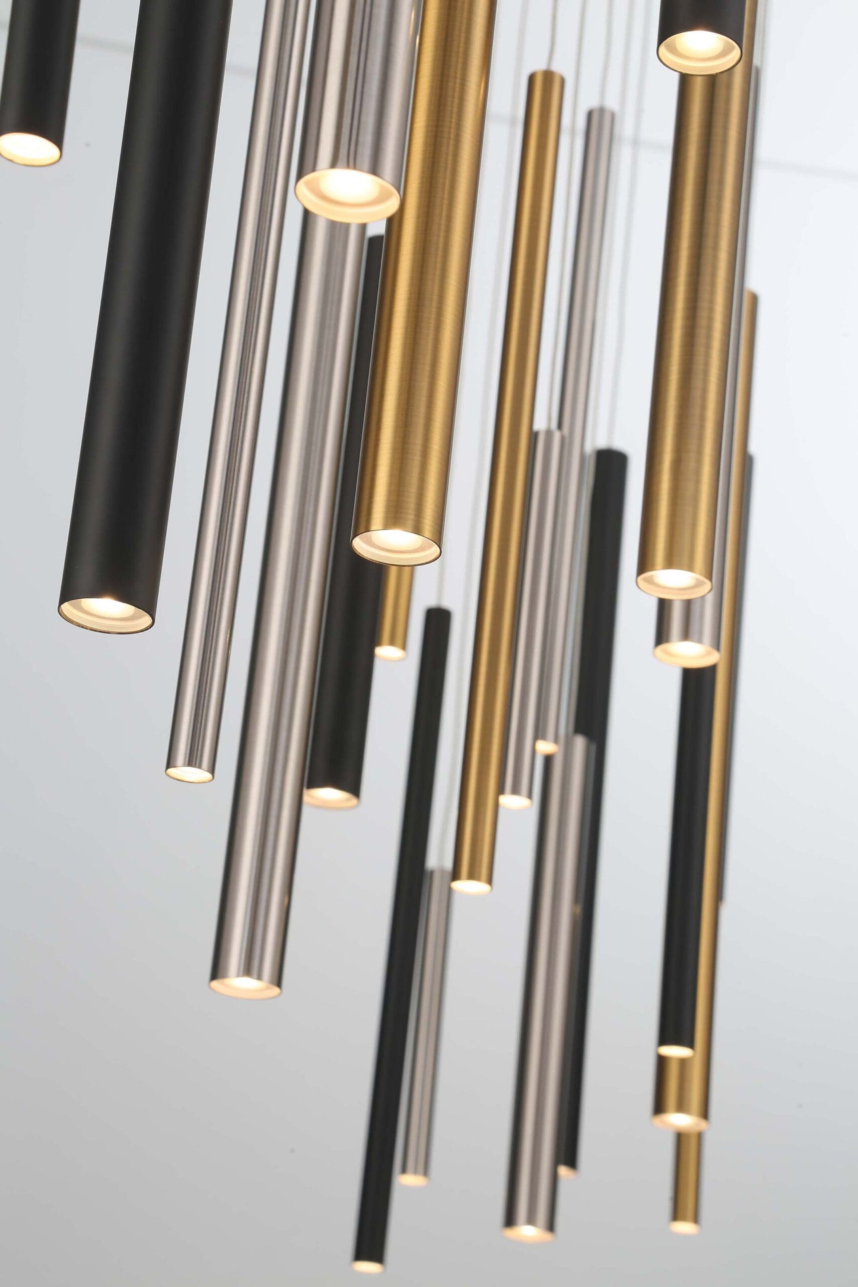 Each tube conceals a powerful LED light at one end, casting focused spot illumination that works both individually and collectively. The result is a layered, multi-dimensional lighting experience that balances functionality with artistry, perfect for highlighting key areas while adding depth and texture to your space.