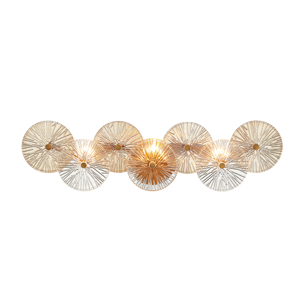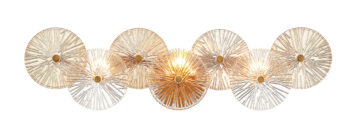 Grand, robust detailing showcase exemplary glasswork. The pressed ribbed glass are each handmade creating unique pieces. Intricate detailing and naturally tinted glass further add to its unique characteristics.
