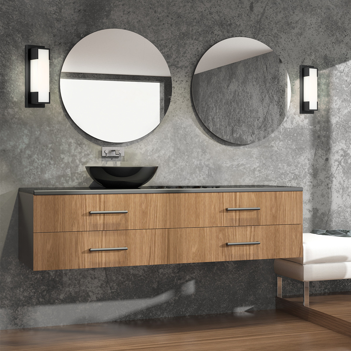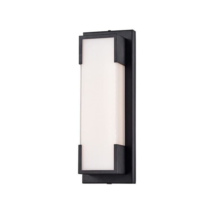 Black brackets frame a white glass LED for a simple design. Polish your interior or exterior space with modern lighting. This outdoor wall sconce will easily suit various settings