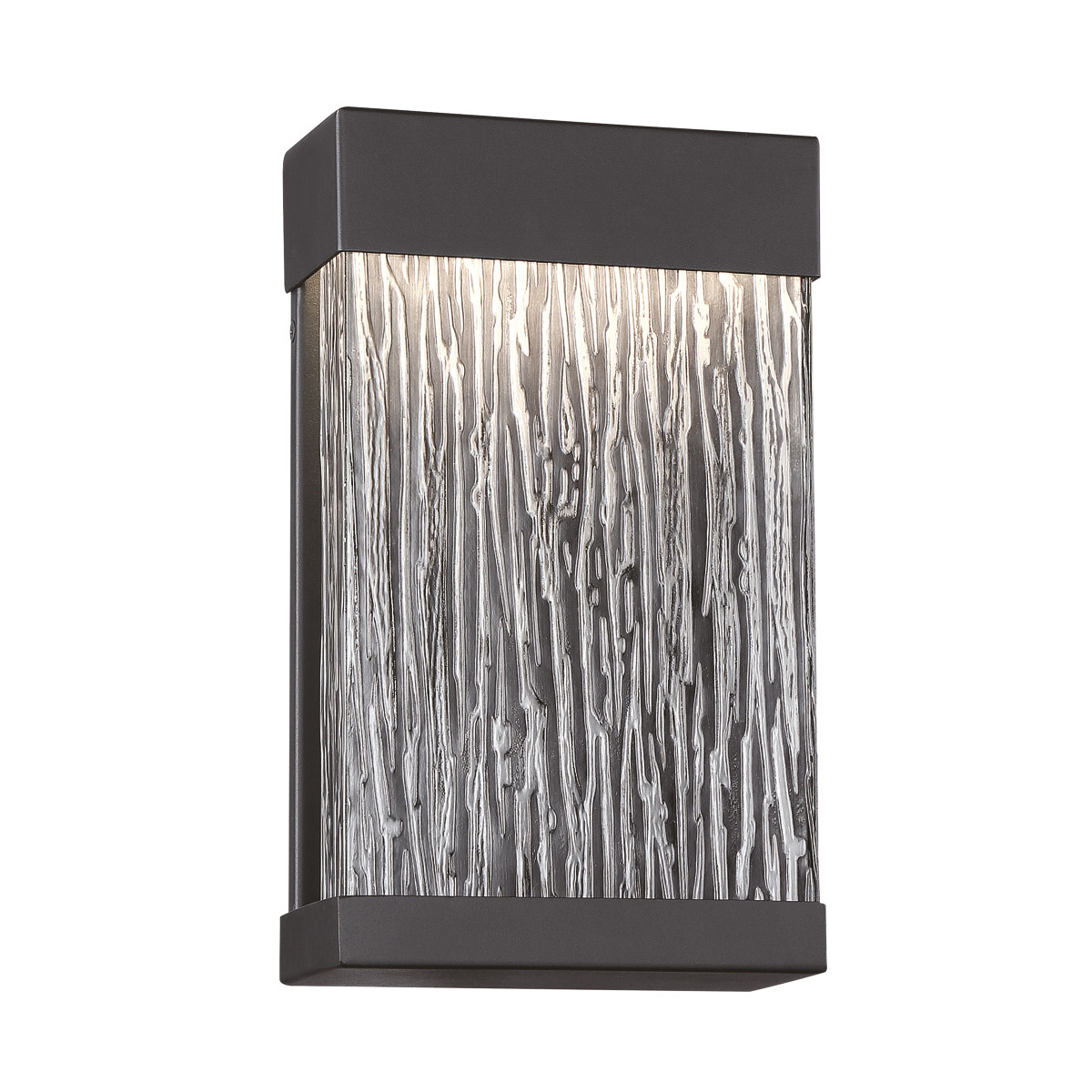 The Tiffany collection features a truly unique surface highlighted by LED lighting. The black, wood grain glass displays beautiful ridges and slight notches that is juxtaposed against a simple black frame.