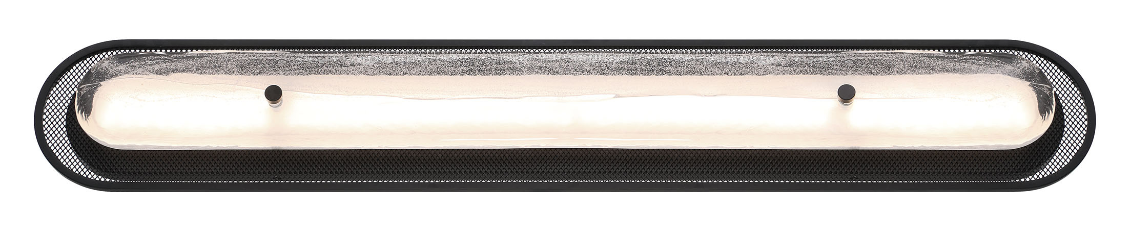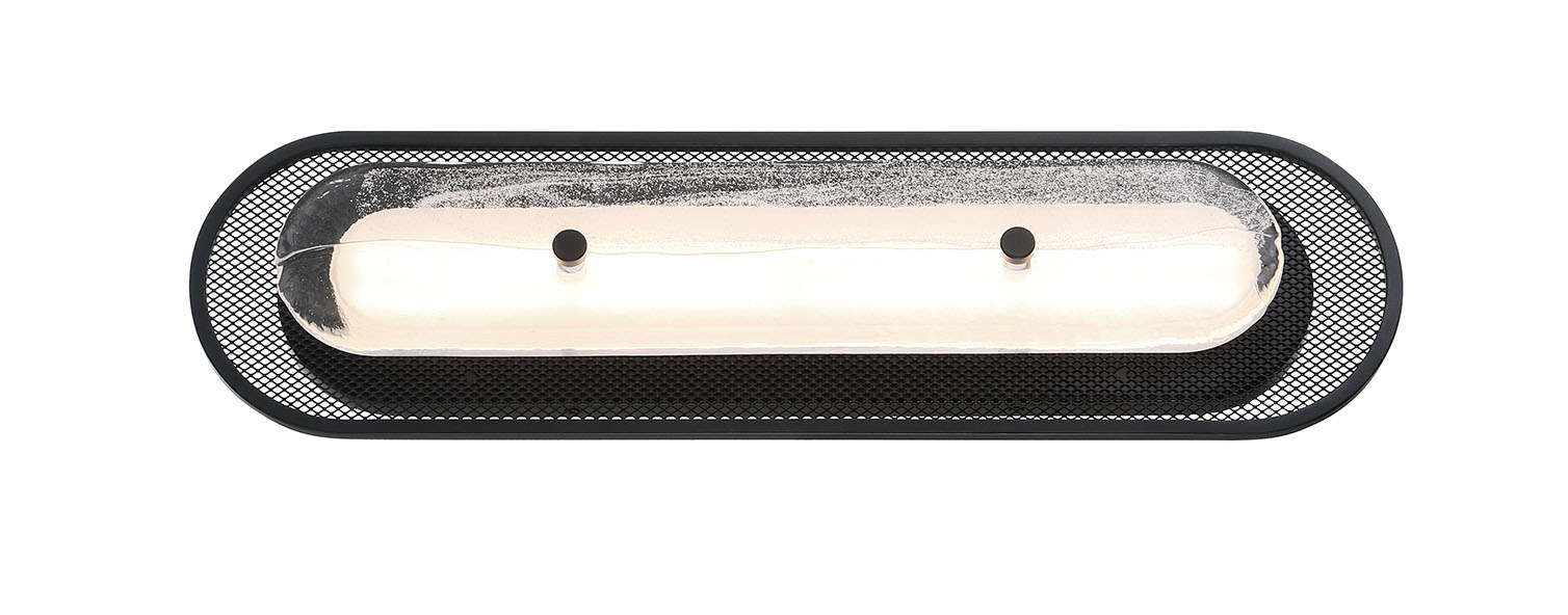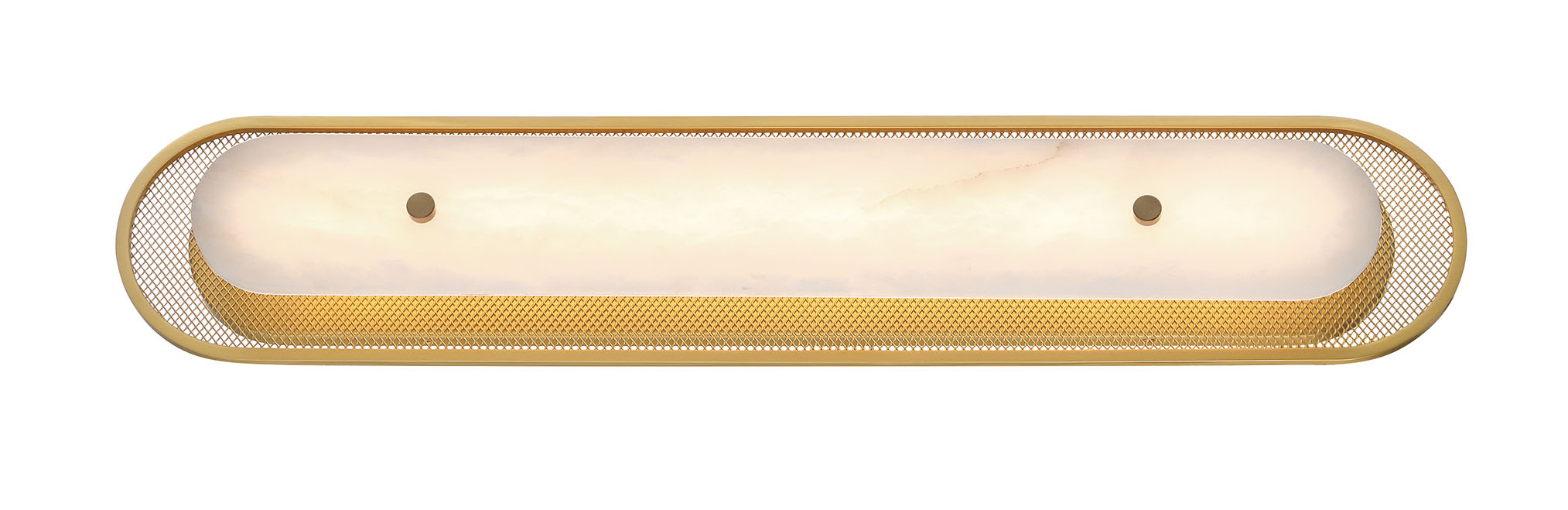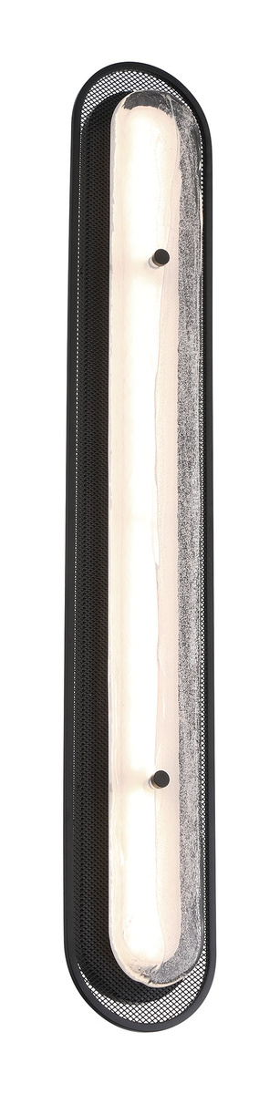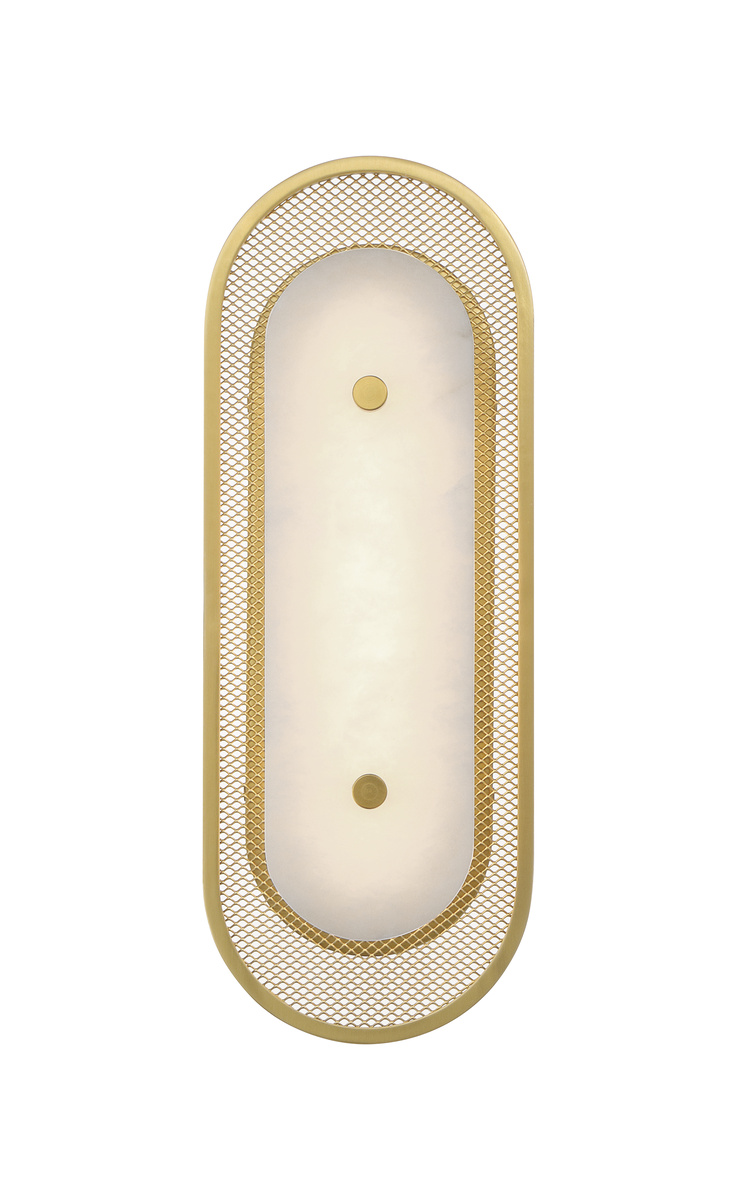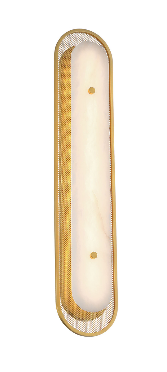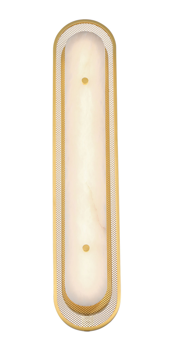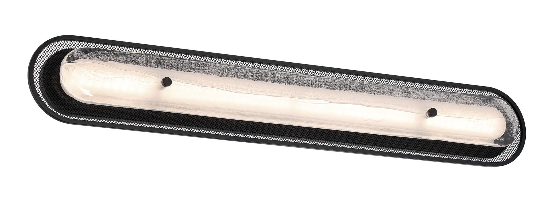 A modern mesh backplate surrounds the uniform LED light source, casting delicate, patterned shadows on the mounting surface. This interaction of light and material adds depth and visual interest to the fixture’s clean lines.