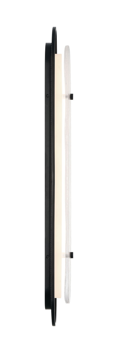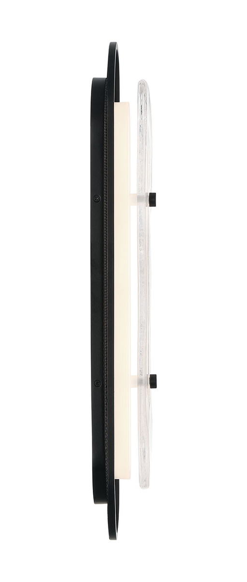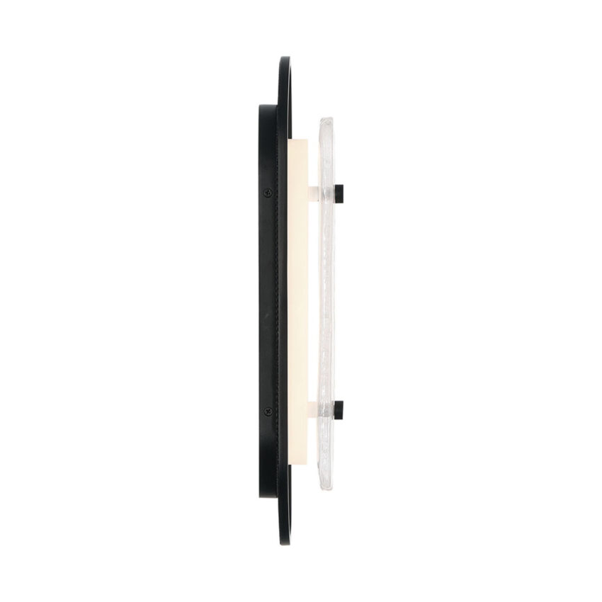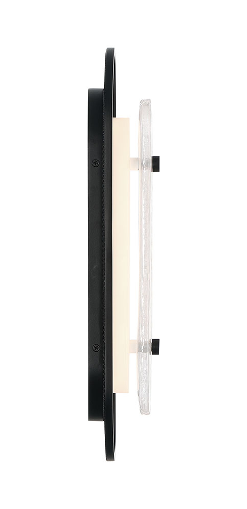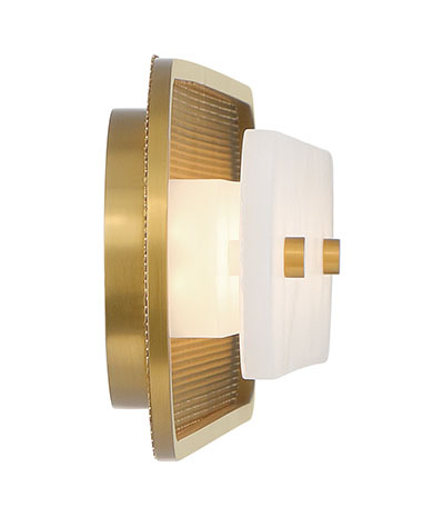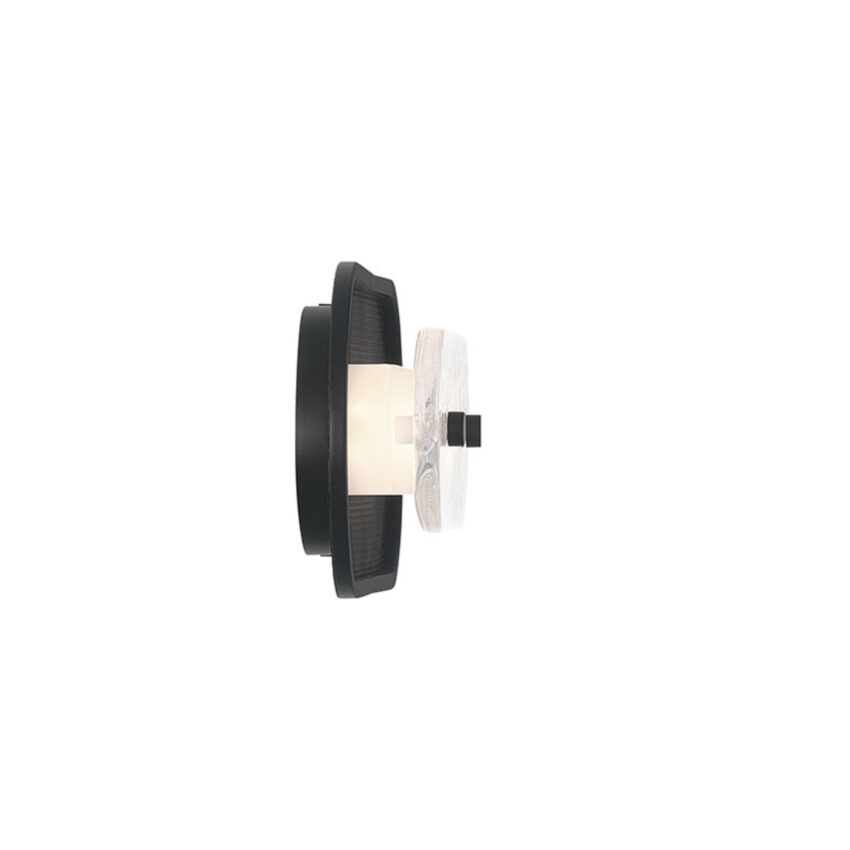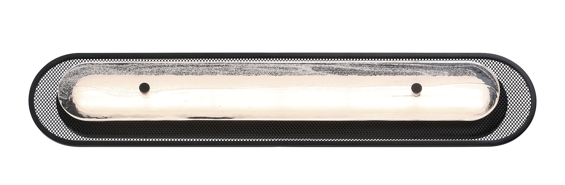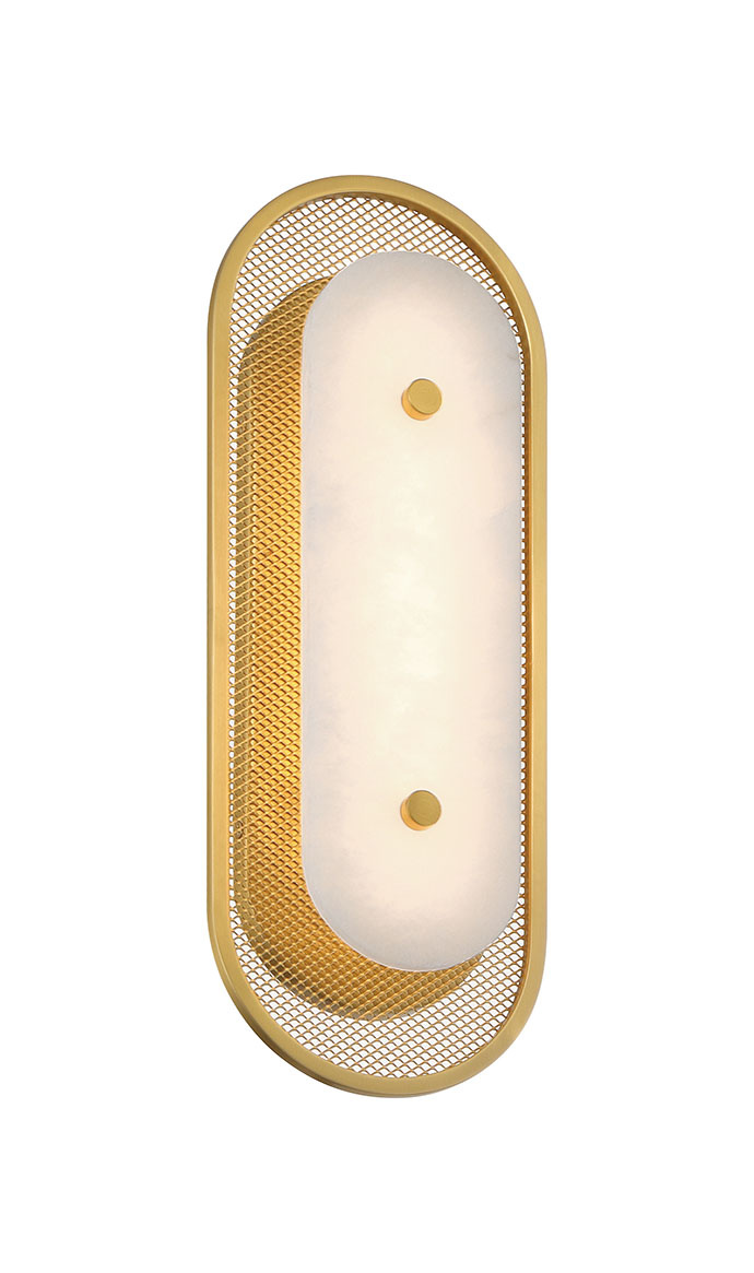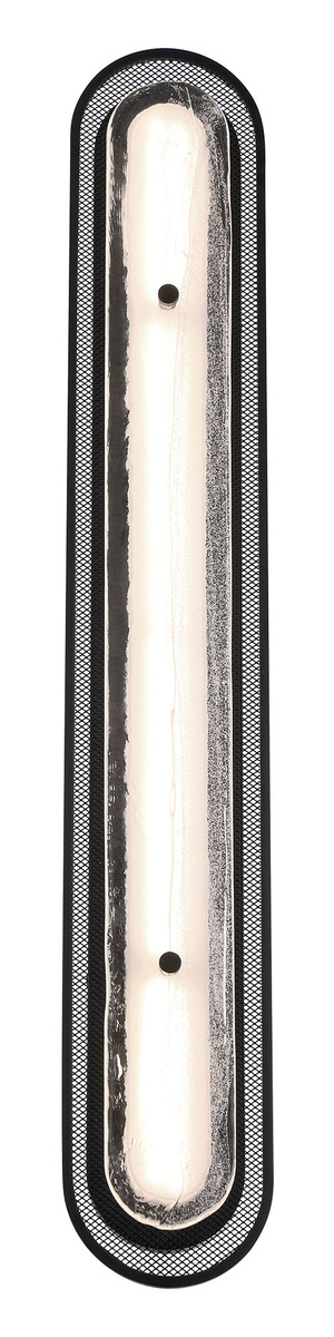 A modern mesh backplate surrounds the uniform LED light source, casting delicate, patterned shadows on the mounting surface. This interaction of light and material adds depth and visual interest to the fixture’s clean lines.