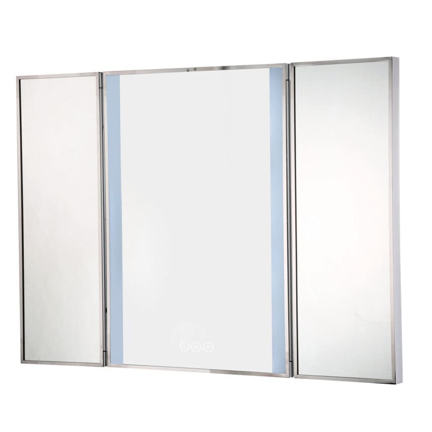 Back-lit, Tri-fold, Up to 180 degree adjustable angle, Touch Sensor Switch. Smart Features: 3 CCT Control, On/Off Defogger, On/Off Power & Stepless Dimming.