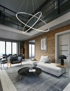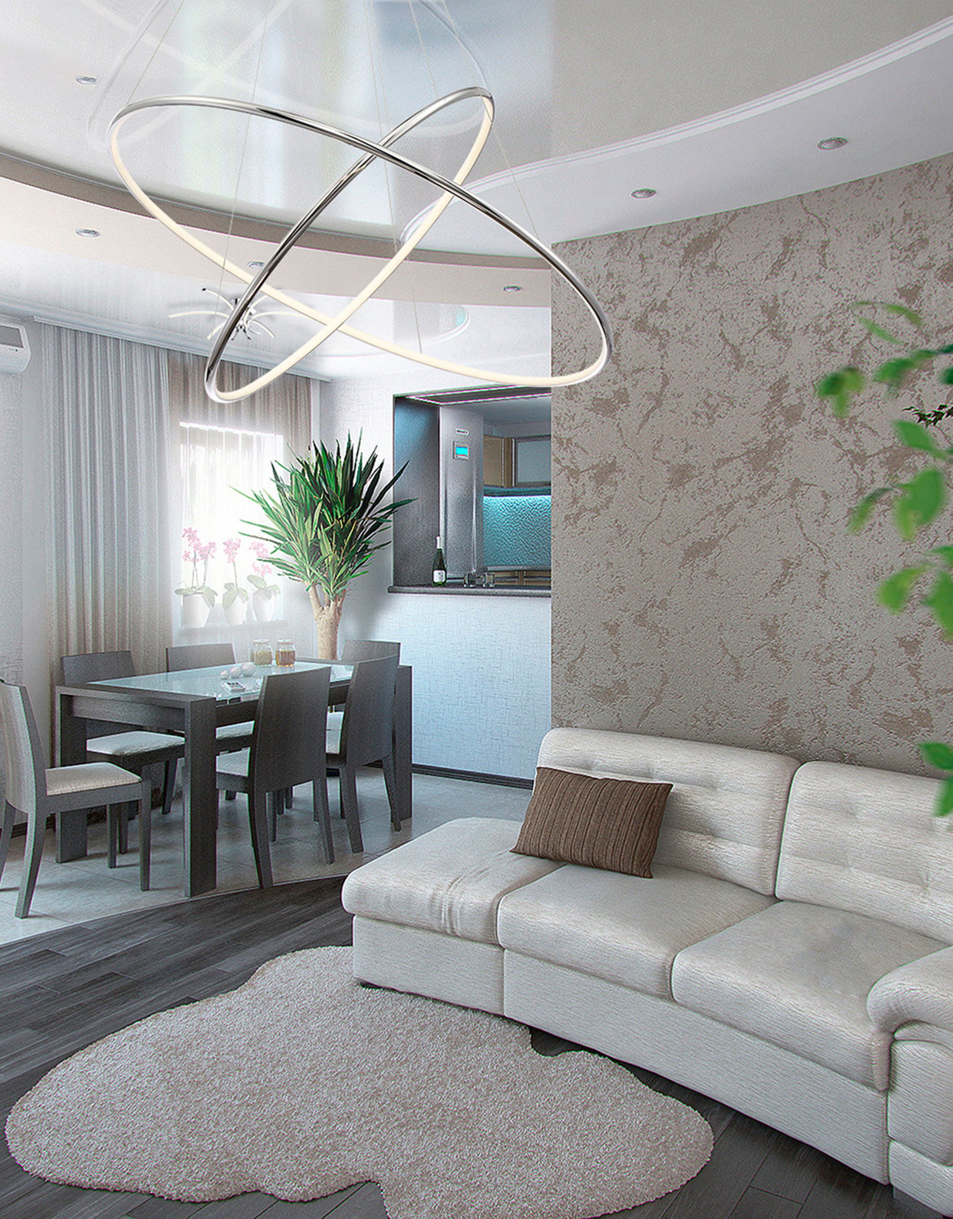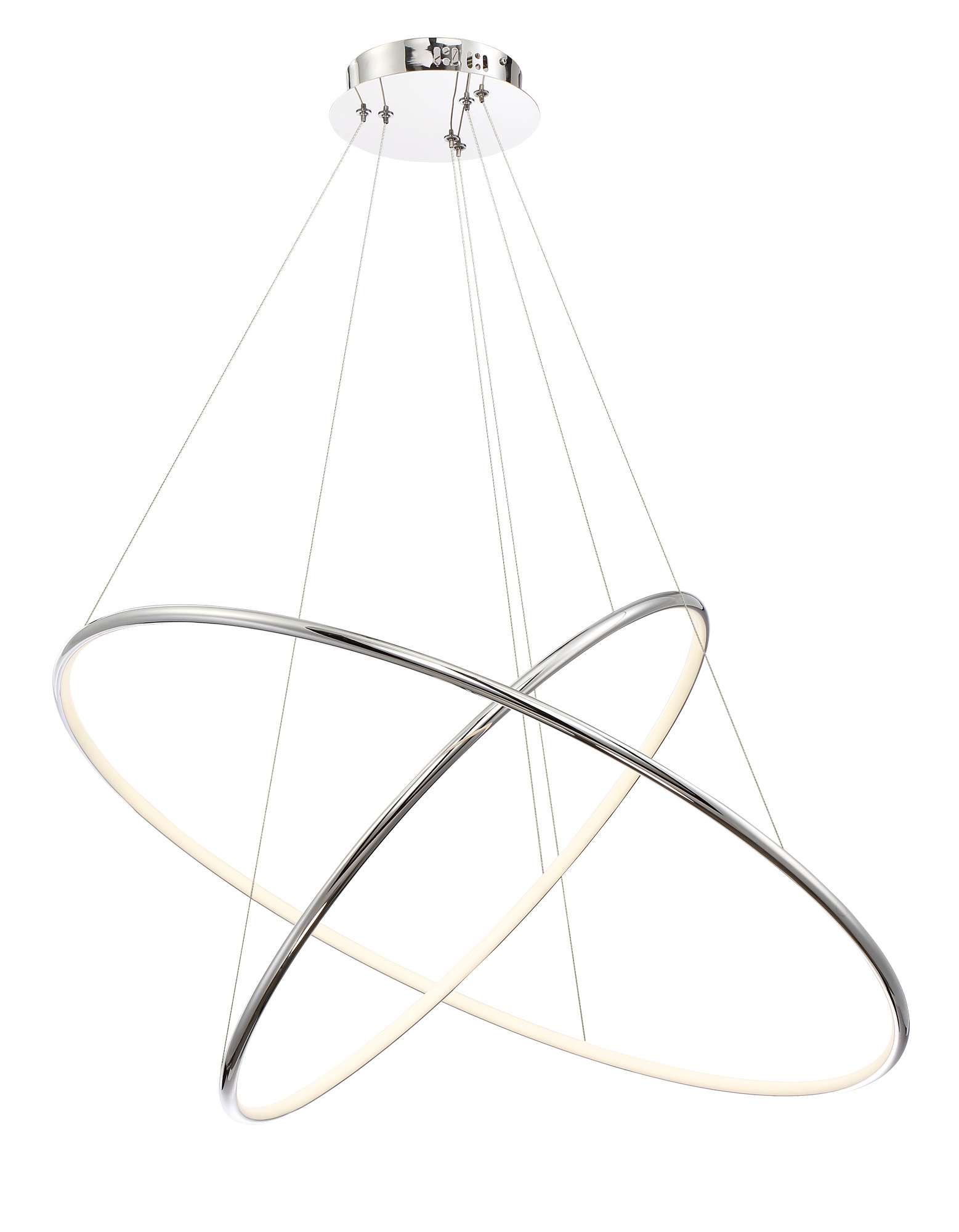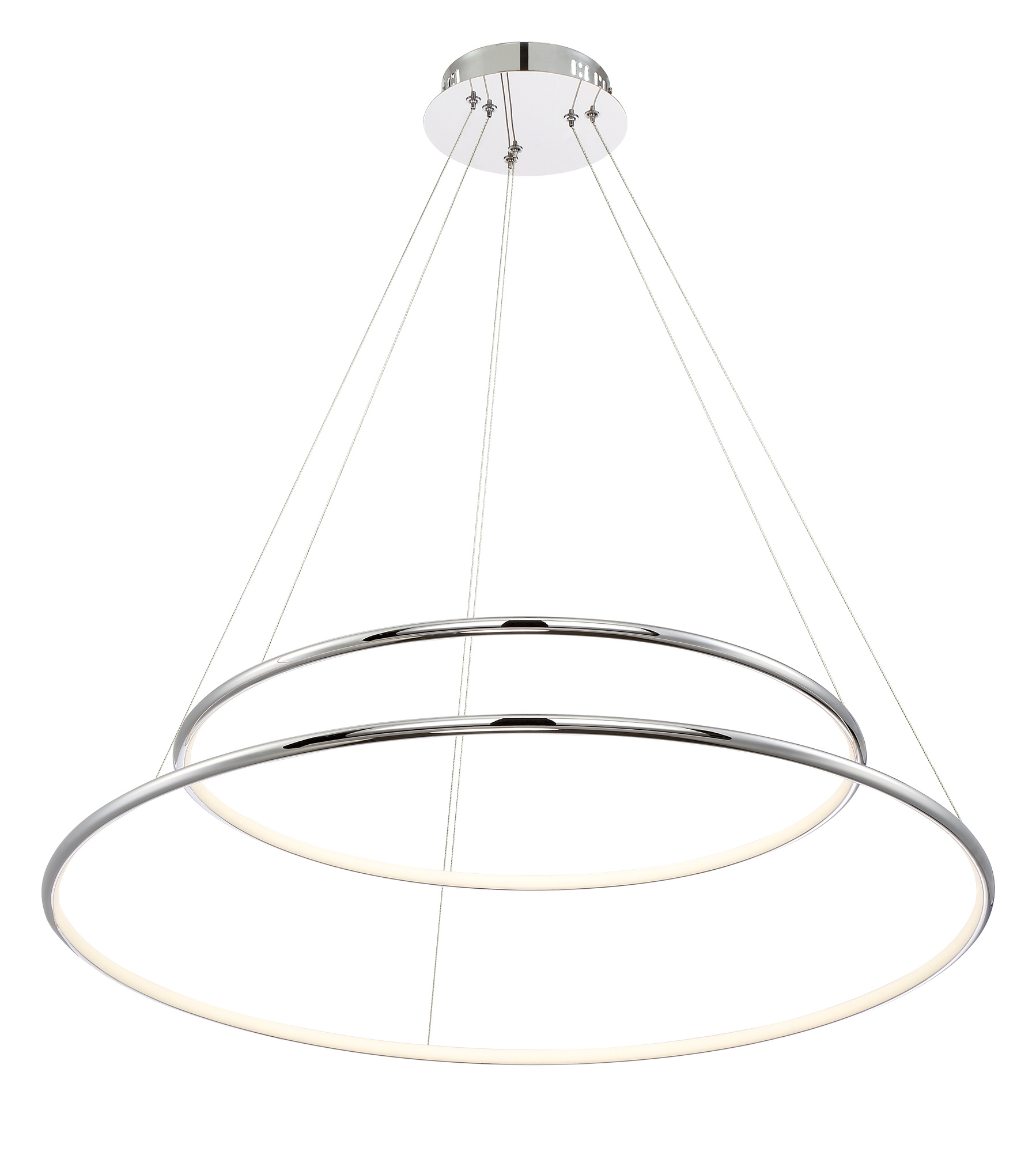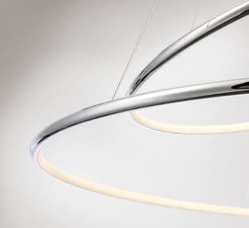 Gleaming polished chrome rings with inner LED diffused light forms an ultra chic design. The slim rings stand at ½” creating a refined buoyant appearance.