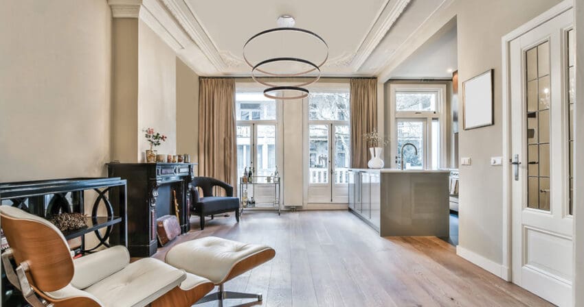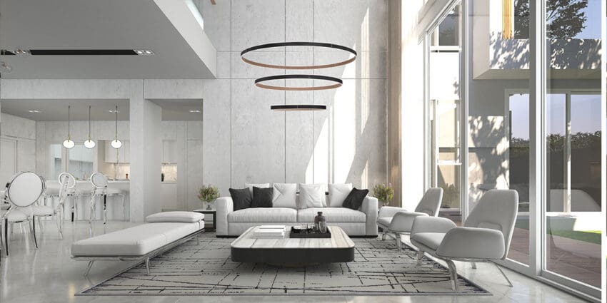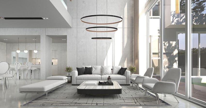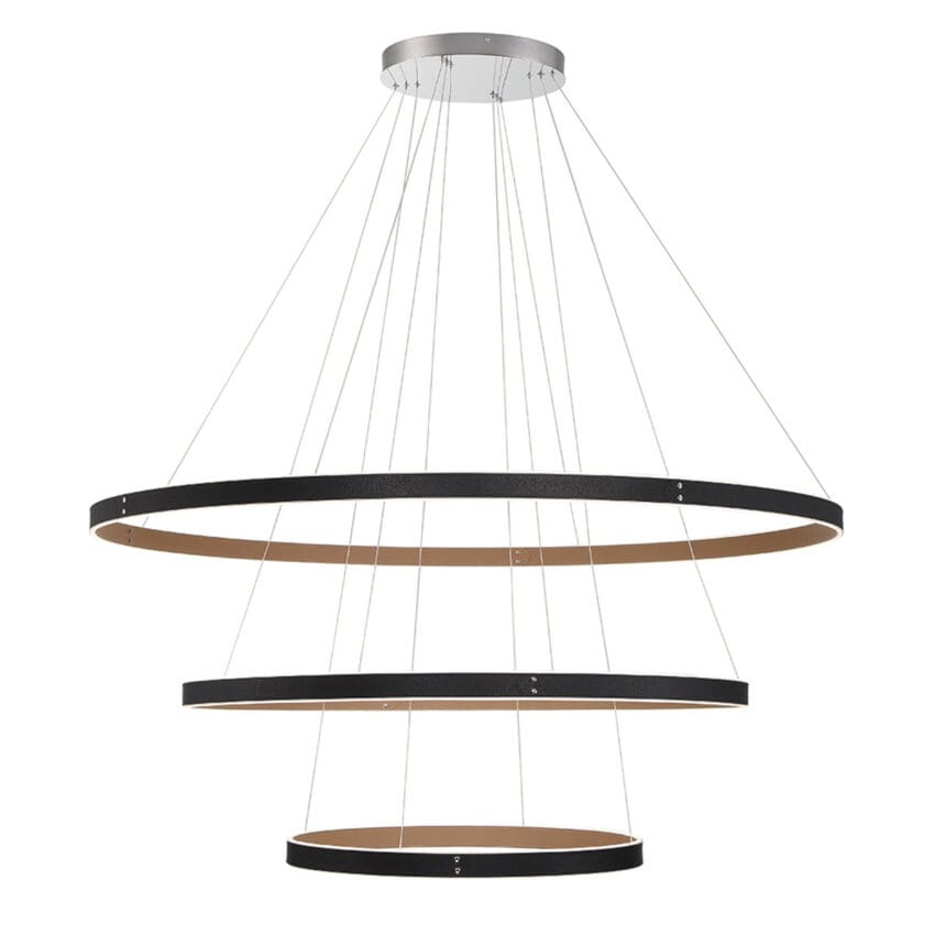 The Verdura collection features vegan leather, accentuated by decorative silver studs. The two-toned fabric highlights one color on the inside while displaying a complementary second color on the outer ring. The textured grooves are highlighted by the luminous glow of integrated LED lights that are encased between. This collection is not only abundant in size but also in the number of fixtures offered. Be it a small home office or a grand staircase, the Verdura collection is available in a range of fixture sizes to fit any room space.