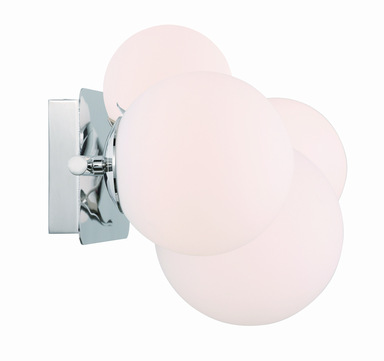 Each βbubbleβ of opal glass softly glows, diffusing light evenly across the space while casting a warm and inviting atmosphere. The rhythm of glass and metal elements along the rail adds visual interest without overpowering the composition.