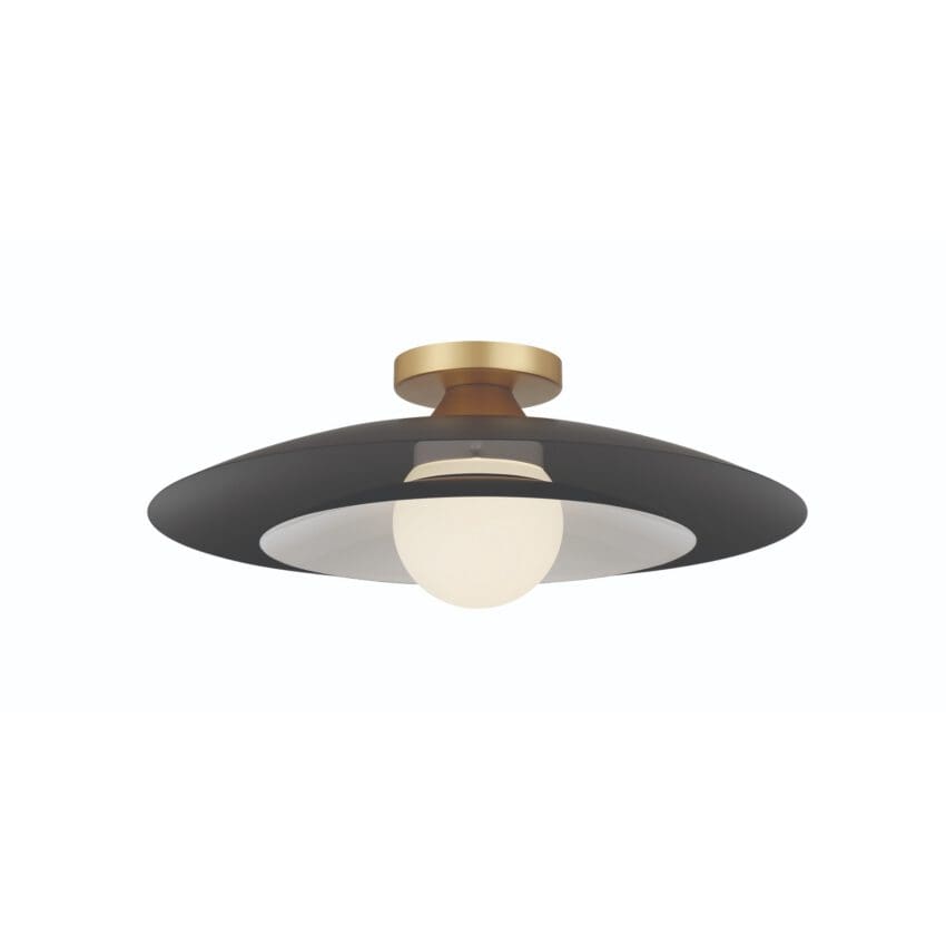 Welsh, Flush Mount, 18", Matte Black, White Glass